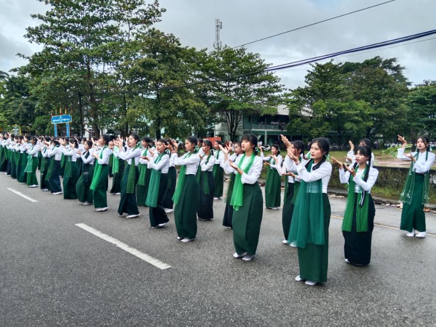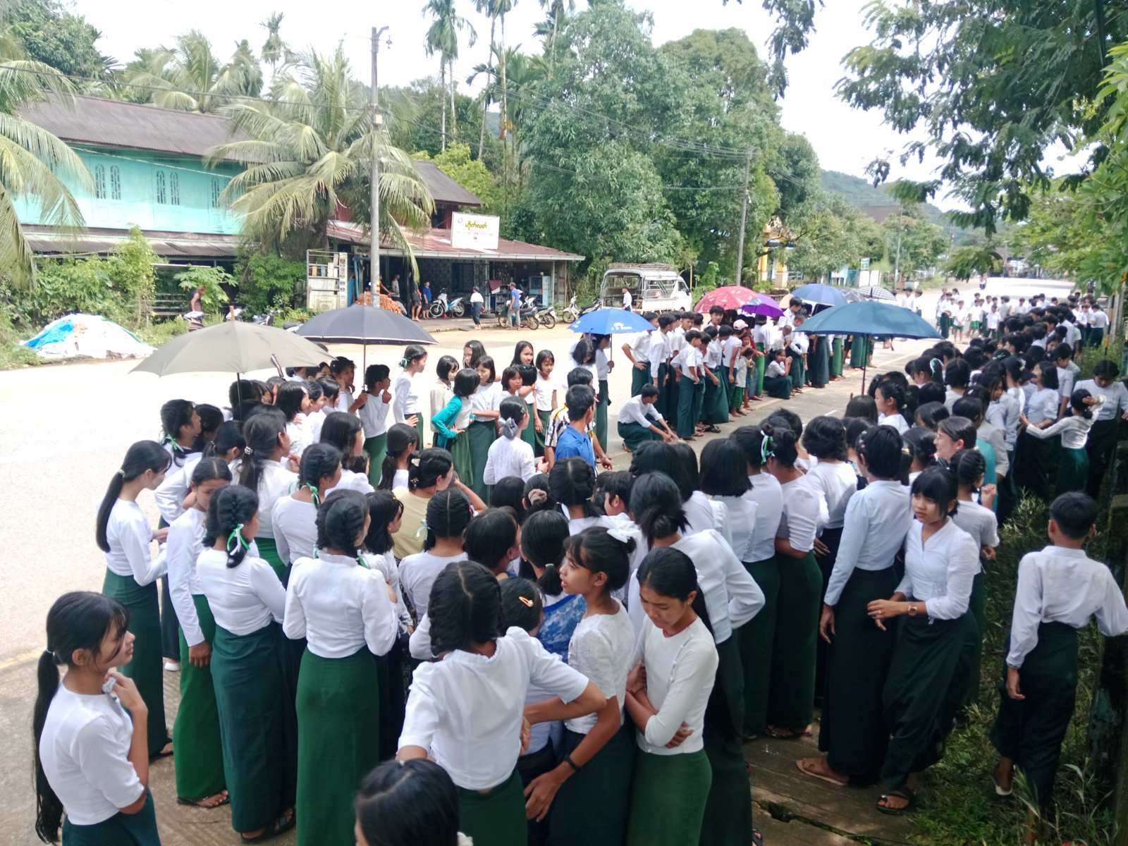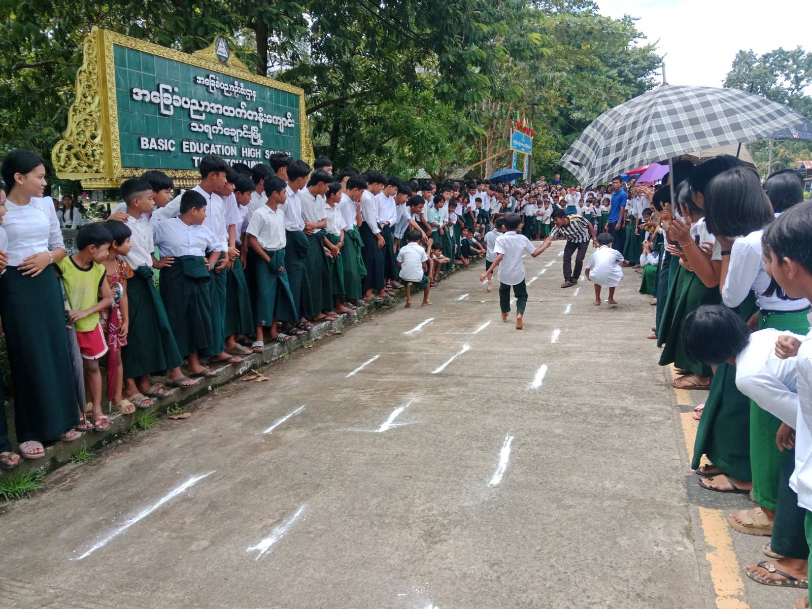ထို့နောက် တပ်နယ်မှူး၊ မြို့နယ်စီမံခန့်ခွဲရေးနှင့် အုပ်ချုပ်ရေးကော်မတီ ဥက္ကဋ္ဌနှင့် တာဝန် ရှိသူများက ပွဲတော်တွင် ခင်းကျင်းပြသထားသည့် လှပသာယာပြည်မြန်မာ ရောင်စုံဓာတ်ပုံများ၊ အထက်တန်းအဆင့် စာစီစာကုံးပြိုင်ပွဲများ၊ အလယ်တန်းအဆင့် စာစီစာကုံးပြိုင်ပွဲများ၊ အထက်တန်း၊ အလယ်တန်းနှင့် မူလတန်းအဆင့် စိတ်ကြိုက်ပန်းချီပြိုင်ပွဲများ၊ ပုံပြောပြိုင်ပွဲများ၊ ကဗျာရွတ်ပြိုင်ပွဲများ၊ ပျော်ပွဲရွှင်ပွဲများအနေဖြင့် ဆေးရောင်ခြယ်ပြိုင်ပွဲ၊ စာလုံးပေါင်းသတ်ပုံပြိုင်ပွဲ၊ ဉာဏ်စမ်းပြိုင်ပွဲ၊ စကားပုံဆက်ပြိုင်ပွဲ၊ အားကစားနည်းများအနေဖြင့် ဂုန်နီအိတ်စွတ်၊ ဘော်လုံးကောက်၊ ပူဖောင်းဖောက်၊ အပ်ချည်ထိုး၊ အပြေးပြိုင်ပွဲတို့ကို လှည့်လည်ကြည့်ရှုအားပေးပြီး တာဝန်ရှိသူများက ပါဝင်ယှဉ်ပြိုင်သောကျောင်းသား ကျောင်းသူများအား ကျောင်းသုံးဗလာစာအုပ်များ လက်ဆောင်ပေးအပ်ခဲ့ကြသည်။