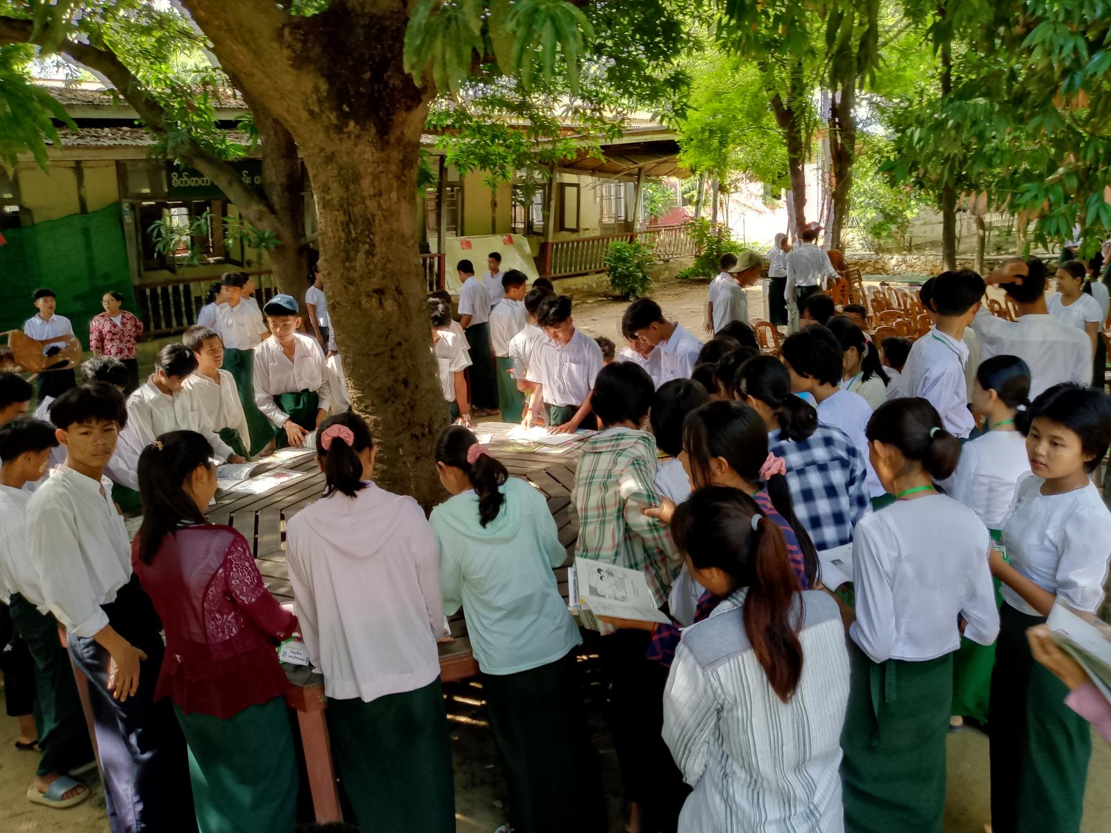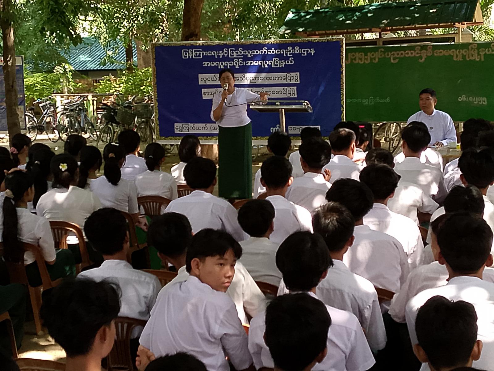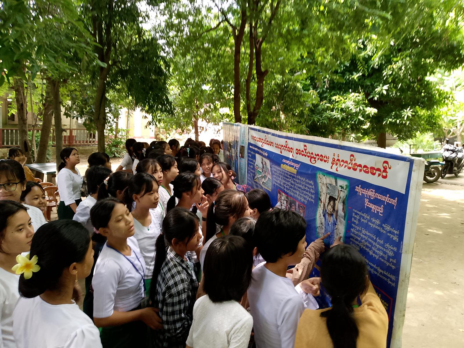 ဟောပြောပွဲတွင် ကျောင်းအုပ်ဆရာမကြီးက အမှာစကားပြောကြားသည်။ ထို့နောက် ပြန်ကြားရေးနှင့် ပြည်သူ့ဆက်ဆံရေးဦးစီးဌာနမှ ဦးစီးအရာရှိ ဦးမျိုးမင်းက ကျောင်းသားများ အသိပညာဗဟုသုတရရှိစေရန် လူငယ်များသိသင့်သိထိုက်သည့် မူးယစ်အန္တရာယ်အကြောင်း၊ ကျောင်းစာအပြင် ပြင်ဗဟုသုတရရှိစေမည့်စာပေများ ဖတ်ရှုရန်လိုကြောင်းနှင့် လူငယ်များသိသင့်သိထိုက်သည်များကိုဟောပြောသည်။ဆက်လက်ပြီး ကျောင်းသားကျောင်းသူများက ပြသထားသော စာအုပ်စာစောင်များနှင့် နံရံကပ်စာစောင်များကို စိတ်ပါဝင်စားစွာကြည့်ရှုခဲ့ကြောင်းသိရသည်။