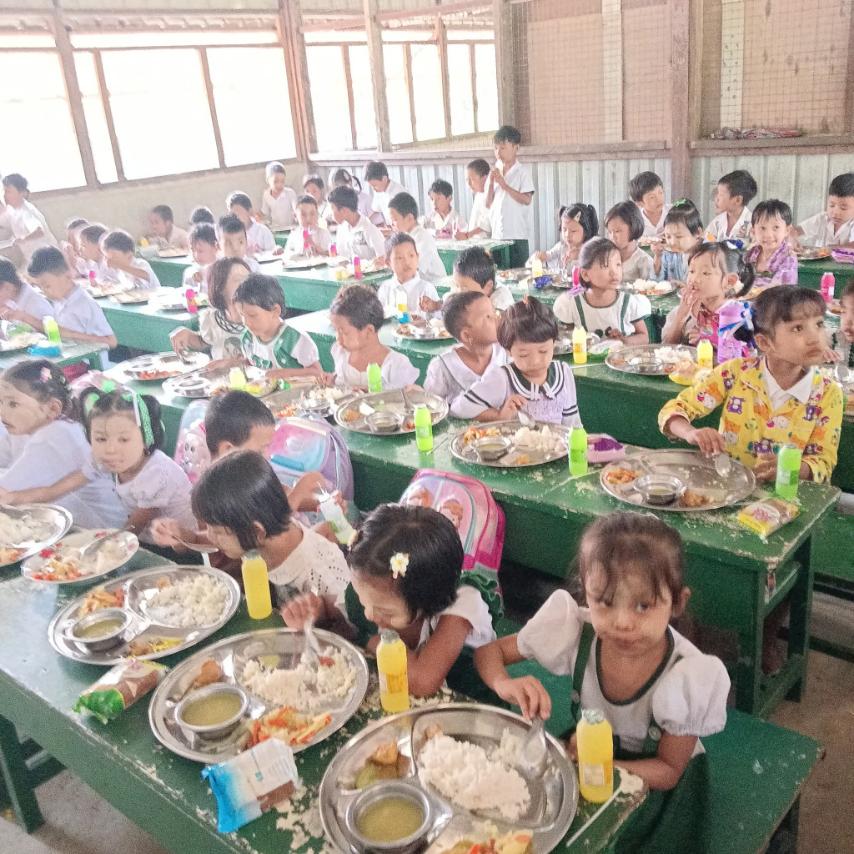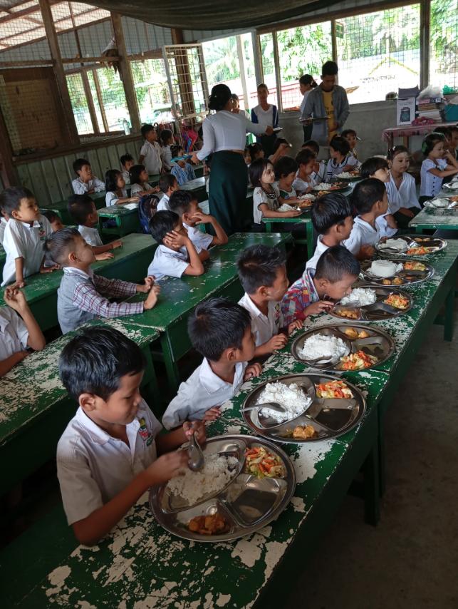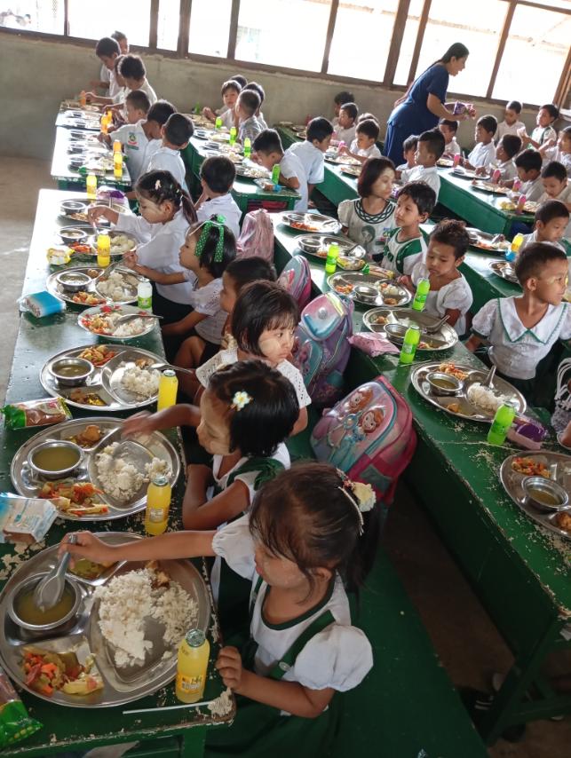 ထိုသို့ ကျောင်းတွင်းအာဟာရကျွေးမွေးရာတွင် မူလတန်းကျောင်းသား/ကျောင်းသူ (၇၇)ဦးတို့ကို အစာအာဟာရ သုံးအုပ်စုတွင်ပါဝင်သော ထမင်း၊ ဟင်း၊ မုန့်နှင့် အချိုရည်တို့ကို ကျွေးမွေးသည်။ ကျောင်းသားကျောင်းသူများ၏ ကာယဉာဏဖွံ့ဖြိုးတိုးတက်ရေးအတွက် အစာ အာဟာရများကို သင့်တင့်မျှတစွာစားားသုံးနိုင်ရေးနှင့် ကျန်းမာသန်စွမ်းသော ကလေးငယ်များဖြစ်လာစေရေးအတွက် ဖြည့်စွက်အစာများကို ကျွေးမွေးခြင်းဖြစ်ကြောင်းသိရသည်။