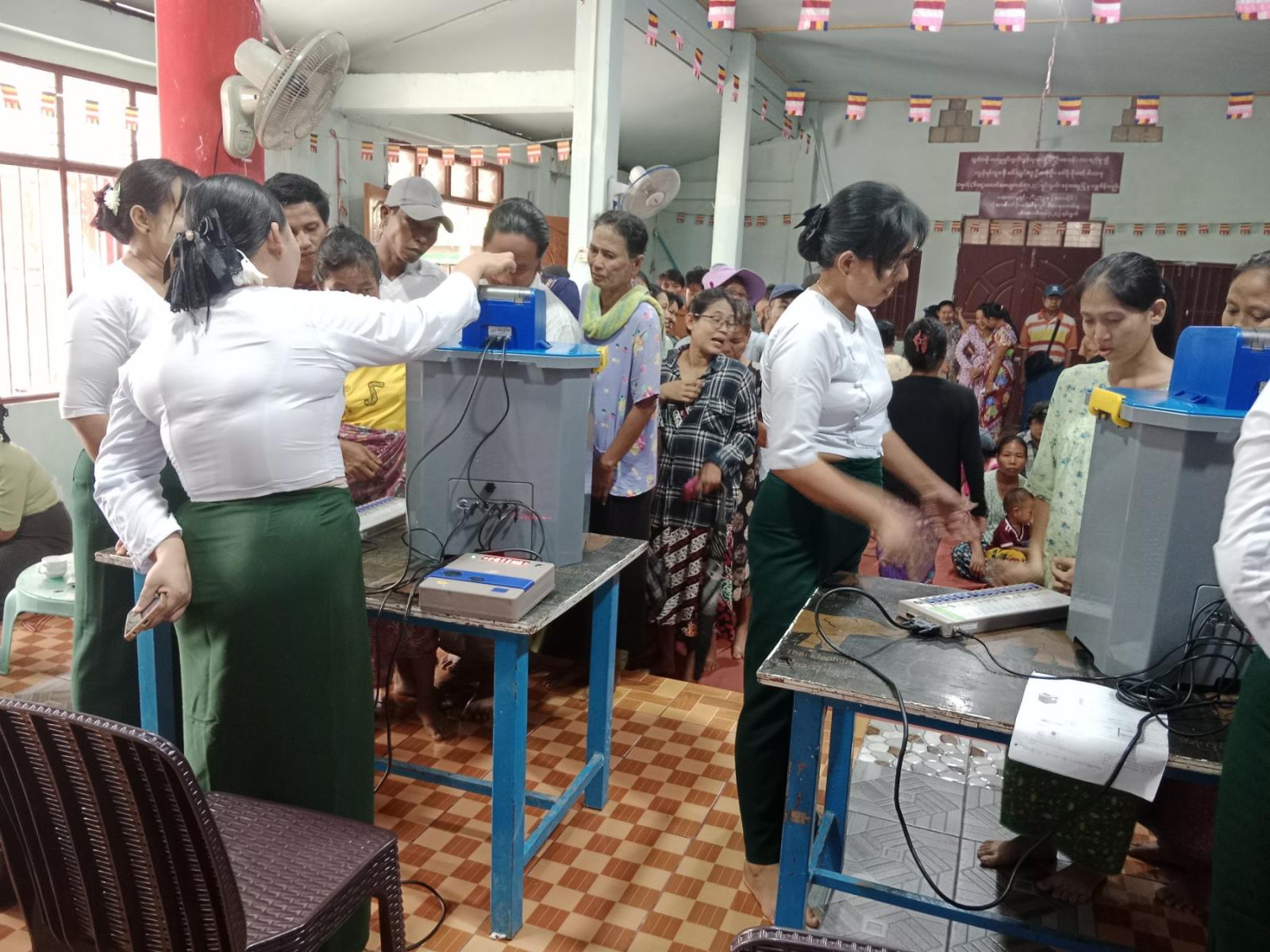 ဒဂုံမြို့သစ်(အရှေ့ပိုင်း)မြို့နယ်တွင် မြန်မာအီလက်ထရောနစ်မဲပေးစက်(MEVM)ဖြင့် ဆန္ဒမဲပေးနည်းလက်တွေ့သရုပ်ပြခြင်းကို ကျန်ရှိနေသည့်ရပ်ကွက်ကျေးရွာတွင် ဆက်လက်ဆောင်ရွက်ပေးသွားမည်ဖြစ်ကြောင်း သိရသည်။