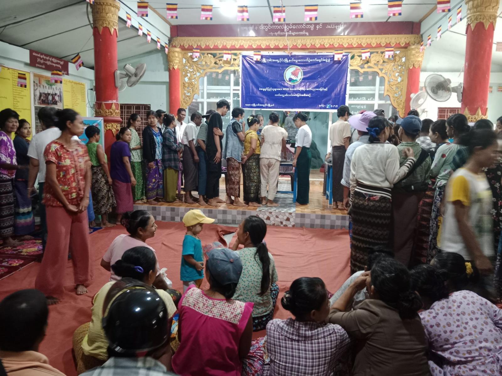 ထိုသို့ဆောင်ရွက်ရာတွင် မြို့နယ်ရွေးကောက်ပွဲကော်မရှင်အဖွဲ့ခွဲအဖွဲ့ဝင်(၁) ဦးအောင်ကျော်မြင့်က မြန်မာအီလက်ထရောနစ်မဲပေးစက်(MEVM)ဖြင့် လက်တွေ့သရုပ်ပြစမ်းသပ်မဲပေးနည်းအသိပညာပေးခြင်း ဆောင်ရွက်ရသည့်ရည်ရွယ်ချက်အား ရှင်းလင်းပြောကြားသည်။