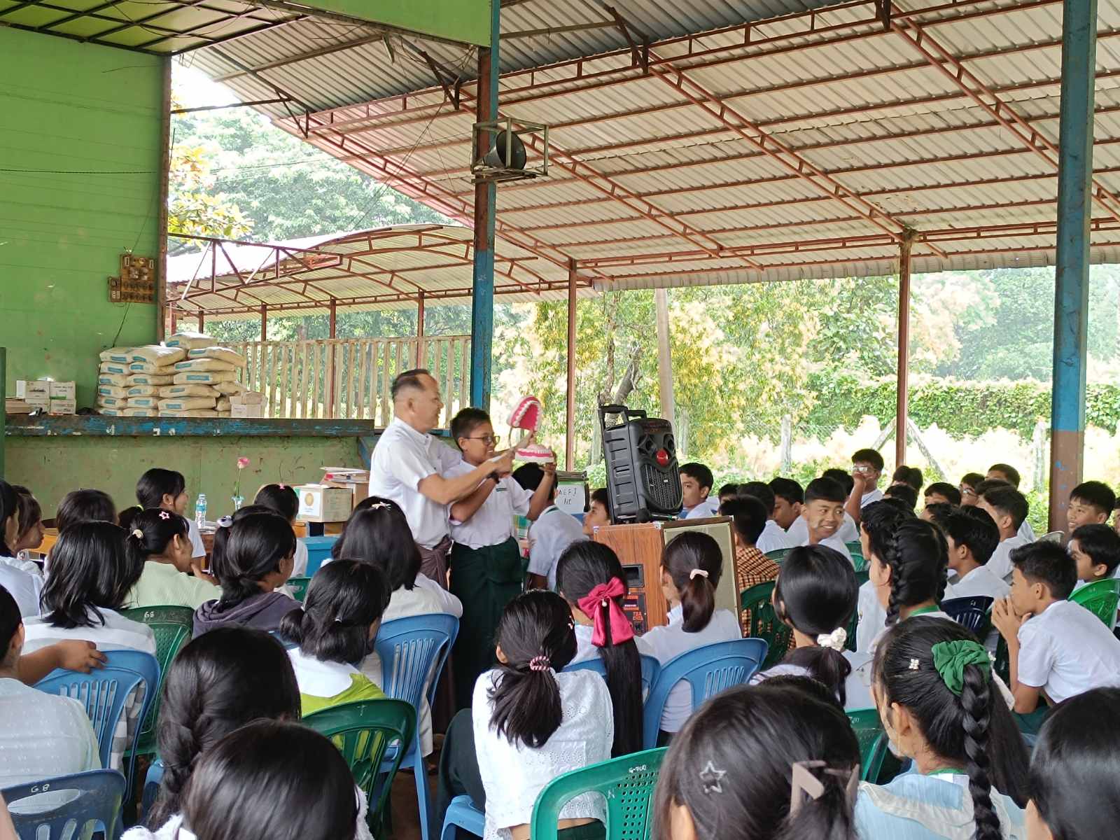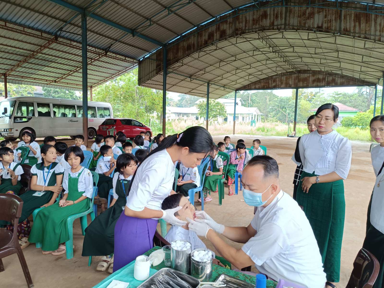 ထိုသို့ ကွင်းဆင်း၍ ကျောင်းကျန်းမာရေးလုပ်ငန်းများ ဆောင်ရွက်ပေးရာတွင် မြို့နယ်စီမံခန့်ခွဲရေးနှင့် အုပ်ချုပ်ရေးကော်မတီဝင် ဦးခင်ဇော် မြို့နယ်ကုသရေးဌာနမှ သွားဘက်ဆိုင်ရာ ဆရာဝန် ဒေါက်တာတင်နိုင်နှင့် ကျောင်းကျန်းမာရေးအဖွဲ့မှ ကျန်းမာရေးမှူး ဒေါ်ကြည်ကြည်လွင်နှင့် အဖွဲ့သည် ကျောင်းသား/သူများအား သွားနှင့် ခံတွင်းစစ်ဆေးခြင်း၊ အထွေထွေကျန်းမာရေးစစ်ဆေးပေးခြင်း၊ စနစ်တကျသွားတိုက်နည်းကို သရုပ်ပြလေ့ကျင့်သင်ကြားပေးခြင်း၊ သန့်လေးသန့်၊ ဝမ်းပျက်ဝမ်းလျှောရောဂါ၊ ဆေးလိပ်သောက်ခြင်းအန္တရာယ်အကြောင်း၊ သွားနှင့် ခံတွင်း၊ သွေးလွန်တုပ်ကွေးရောဂါနှင့် အကြောင်းတို့ကို ကျန်းမာရေးအသိပညာပေးဟောပြောခြင်းများ ဆောင်ရွက်ခဲ့ပြီး ကျောင်းသား/ သူ (၁၂၉) ဦးအား သွားကျန်းမာရေးစောင့်ရှောက်မှုပေးခြင်း၊ (၇၂) ဦးအား သွားပိုးပေါက်ဖာခြင်း၊ (၃၉)ဦးအား သွားနှုတ်ပေးခဲ့ကြောင်း သိရှိရသည်။