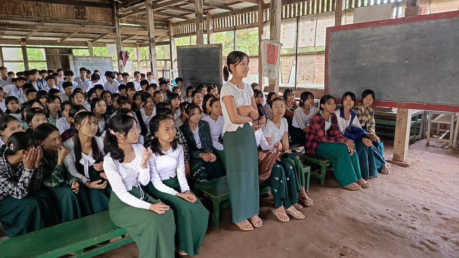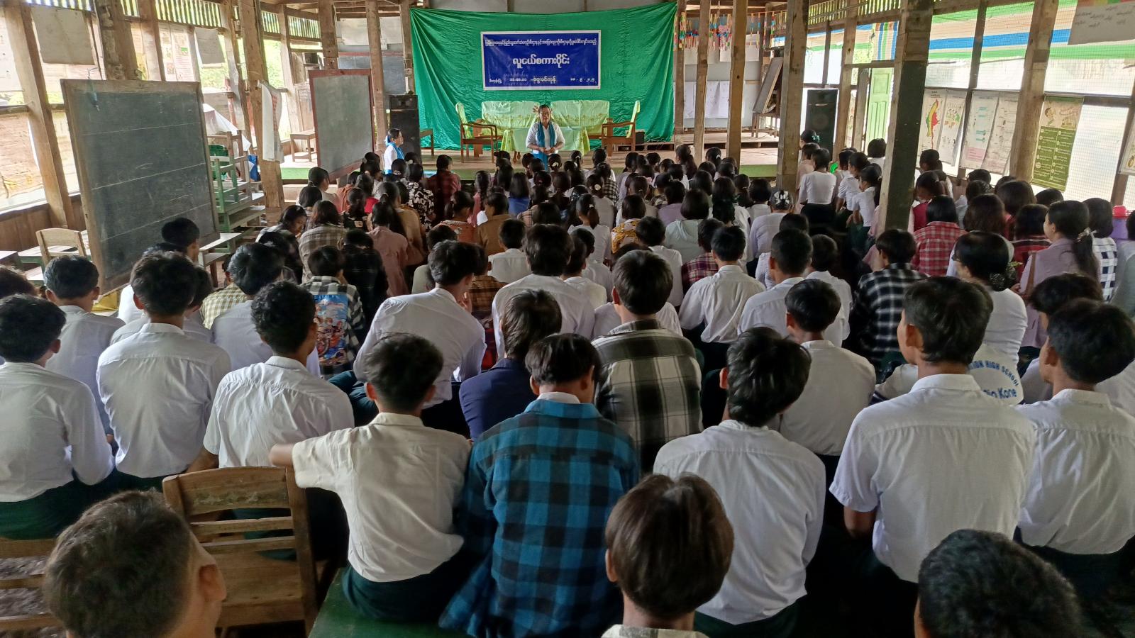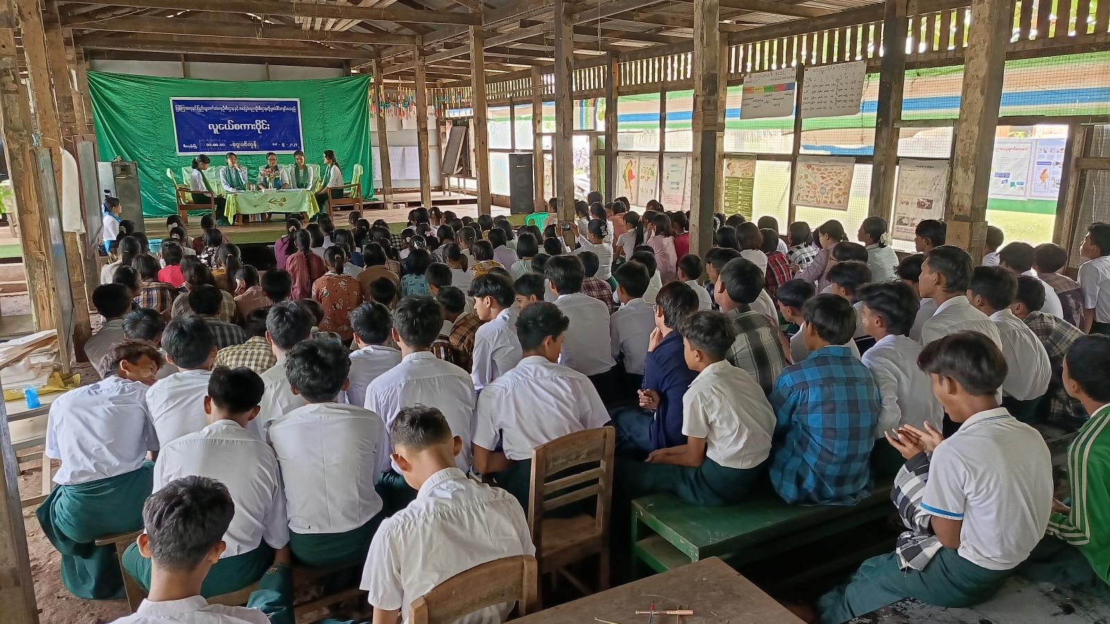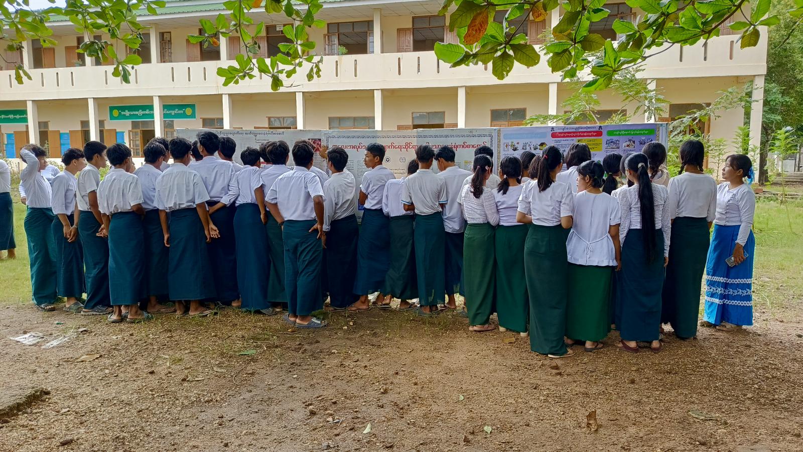 ထို့နောက် ပြန်ကြားရေးနှင့်ပြည်သူ့ဆက်ဆံရေးဦးစီးဌာနမှ ခင်းကျင်းပြသထားသော ငလျင်အသိပညာပေး၊ လူကုန်ကူးမှုပပျောက်ရေးနှင့် ကလေးအလုပ်သမားပပျောက်ရေး အသိပညာပေးနံရံကပ်စာစောင်များအား ဆရာ၊ ဆရာမများနှင့် ကျောင်းသား၊ ကျောင်းသူများက ကြည့်ရှုလေ့လာခဲ့ကြကြောင်း သိရသည်။