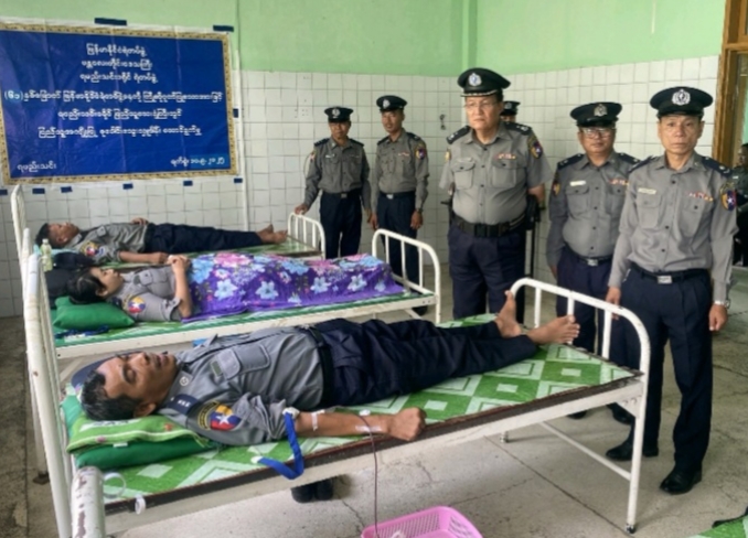 ( ၆၁ )နှစ်မြောက် မြန်မာနိုင်ငံရဲတပ်ဖွဲ့နေ့ကို ကြိုဆိုဂုဏ်ပြုသာအားဖြင့် ရမည်းသင်းခရိုင် ရဲတပ်ဖွဲ့ ခရိုင်ရဲတပ်ဖွဲ့မှူး ဒုတိယရဲမှုးကြီးမင်းဟန်နှင့် တပ်ဖွဲ့ဝင်များသည် စက်တင်ဘာ ၁၀ရက် နံနက်၉နာရီက ရမည်းသင်းခရိုင်ပြည်သူ့ဆးရုံကြီး၌ စုပေါင်းသွးလှူဒါန်းကြကြောင်း သိရသည်။