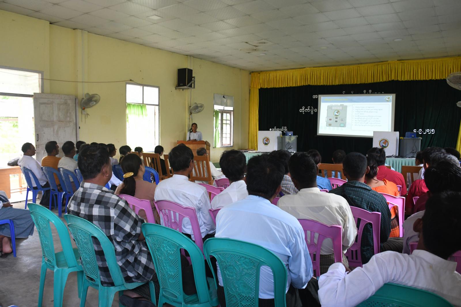ဦးစွာ မြို့နယ်ရွေးကောက်ပွဲကော်မရှင်အဖွဲ့ခွဲဥက္ကဋ္ဌ ဒေါ်နှင်းဆီ နိုင်ငံရေးပါတီဝင်များအားဖိတ်ခေါ်၍ မဲပေးစက်အကြောင်းရှင်းလင်းခြင်းနှင့် လက်တွေ့ဆန္ဒမဲပေးသရုပ်ပြခြင်း၏ ရည်ရွယ်ချက်များကို ရှင်းလင်း ဆွေးနွေးပြီး မြို့နယ်ရွေးကောက်ပွဲအရာရှိ ဒေါ်ခင်သီတာခိုင်က မြန်မာအီလက်ထရောနစ် မဲပေးစက်(MEVM) အကြောင်းနှင့် မဲပေးပုံအဆင့်ဆင့်တို့ကို ရှင်းလင်းဆွေးနွေးသည်။