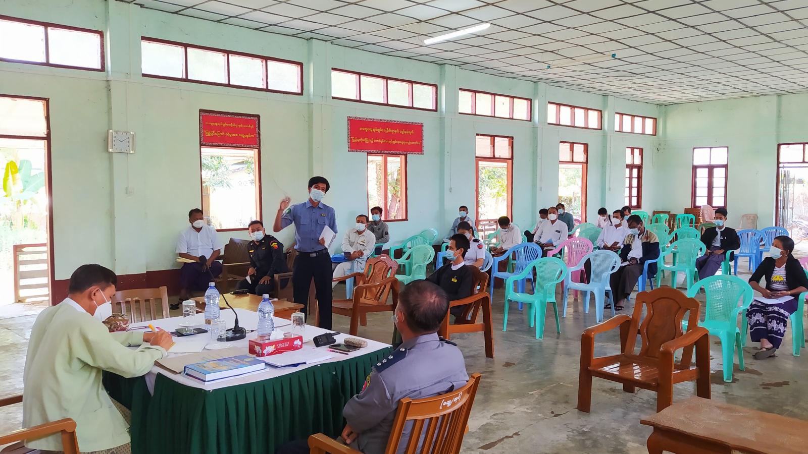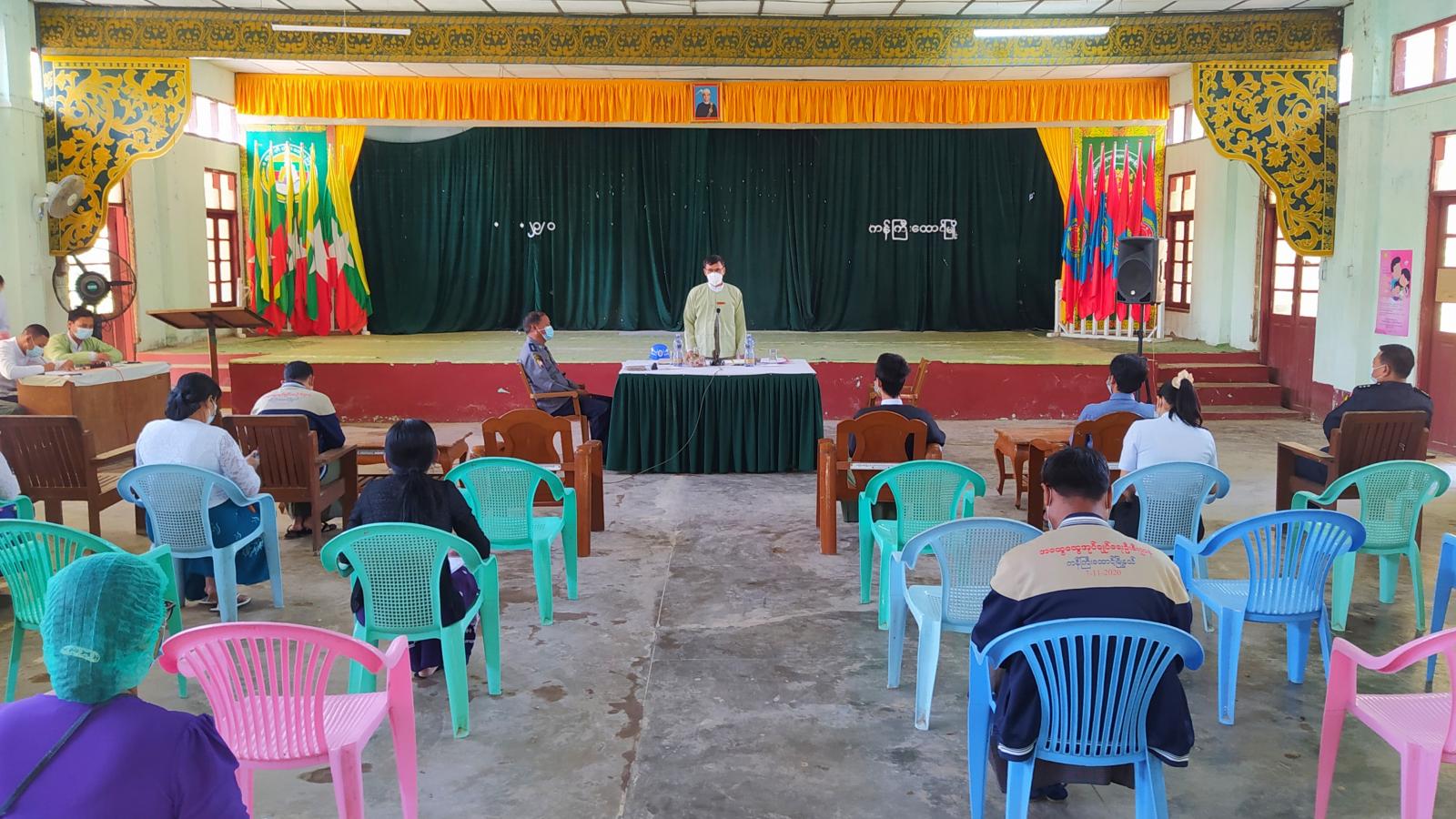 ထို့နောက် တက်ရောက်လာသည့် မြို့နယ်ဌာနဆိုင်ရာများမှ တာဝန်ရှိသူများက (၇၃)နှစ်မြောက် လွတ်လပ်ရေးနေ့ အခမ်းအနား ကျင်းပပြုလုပ်မည့် နေရာရွေးချယ်ခြင်း၊ ရောင်စုံမီးတပ်ဆင်ထွန်းညှိခြင်းများနှင့် ကိုဗစ်-၁၉ ရောဂါ ကာကွယ်ရေးဆိုင်ရာ လမ်းညွှန်ချက်များနှင့် အညီဆောင်ရွက်သွား မည့် အခြေအနေများကို သက်ဆိုင်ရာကဏ္ဍအလိုက် တင်ပြဆွေးနွေးခဲ့ကြပြီး လွတ်လပ်ရေးနေ့အခမ်းအနားကို အမှတ် (၁)ရပ်ကွက်ရှိ လွတ်လပ်ရေးကျောက်တိုင်ပန်းခြံတွင် ကျင်းပပြုလုပ်သွားရန် ဆုံးဖြတ်ချက်ချခဲ့ပြီး လိုအပ်သည်များကို ပေါင်းစပ်ညှိနှိုင်းဆောင်ရွက်ခဲ့ကြောင်းနှင့် အဆိုပါ အစည်း အဝေးကို ကျန်းမာရေးနှင့် အားကစားဝန်ကြီးဌာနမှ ညွှန်ကြားချက်များနှင့်အညီ ကျင်းပဆောင်ရွက် ခဲ့ကြောင်း သိရသည်။