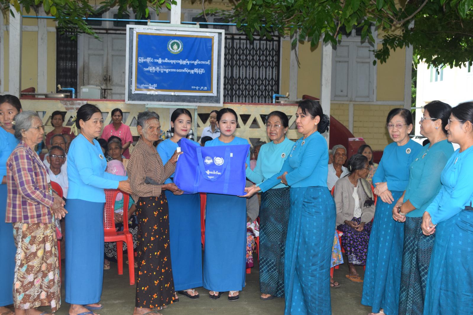 ထို့နောက် မြန်မာနိုင်ငံအမျိုသမီးရေးရာအဖွဲ့ချုပ်ဥက္ကဋ္ဌ ဒေါက်တာသက်သက်ဇင်နှင့် တာဝန်ရှိသူများသည် တံတားဦးမြို့နယ်ရှိ ငလျင်ဘေးသင့် သက်ကြီးရွယ်အိုများ (၃၈) ဦးအား အားပေးစကားပြောကြားပြီး ထောက်ပံ့ပစ္စည်းများကို လှူဒါန်းပေးကြသည်။