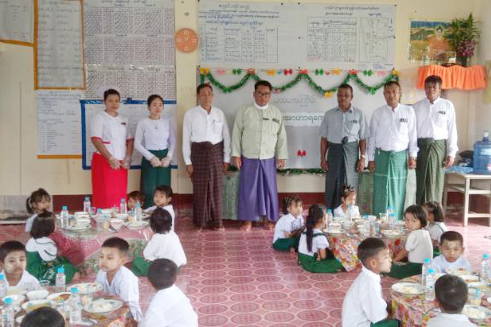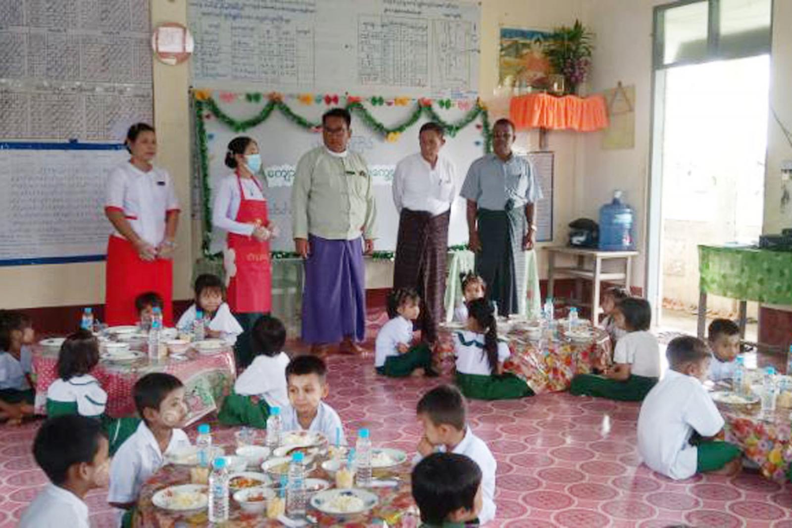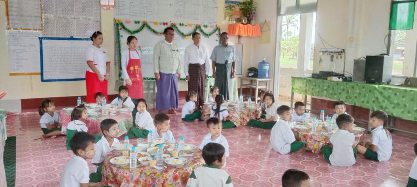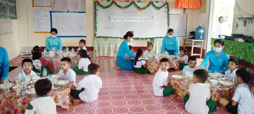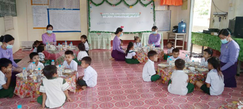 အာဟာရပြည့်ဝမျှတ၍ ကျန်းမာရေးနှင့်ညီညွတ်မှုရှိသော ထမင်း၊ ကြက်အားလူးပေါင်း၊ အသီးအရွက်ကြော်၊ ပဲနီလေးဟင်းချို၊ သရက်သီသုတ်နှင့်ပြောင်းဖူးအချိုများဖြင့် KG ကျောင်းသား ကျောင်းသူများအား ကျန်းမာရေးဝန်ထမ်းများ၊ ဆရာ ဆရာမများနှင့်လူမှုရေး အသင်းအဖွဲ့များ၊ ကျောင်းသားမိဘများက နေ့လယ်စာ ကျွေးမွေးခဲ့ကြခြင်းဖြစ်သည်။