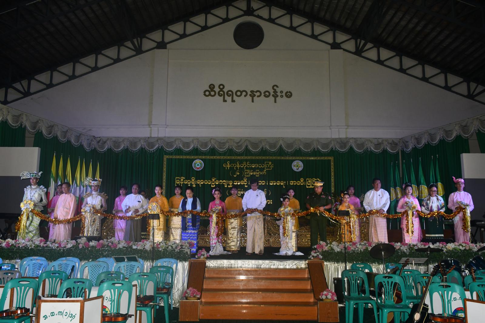 ထို့နောက် ရန်ကုန်တိုင်းဒေသကြီး (၂၆)ကြိမ်မြောက် မြန်မာ့ရိုးရာယဉ်ကျေးမှု အဆို၊ အက၊ အရေး၊ အတီး ပြိုင်ပွဲကျင်းပရေးဦးစီးကော်မတီနာယက၊ ရန်ကုန်တိုင်းဒေသကြီး ဝန်ကြီးချုပ် ဦးစိုးသိန်း၊ ရန်ကုန်တိုင်းစစ်ဌာနချုပ် တိုင်းမှူး ဗိုလ်ချုပ် ပြည့်စုံလင်း၊ လူမှုရေးရာဝန်ကြီး ဦးဌေးအောင်၊ ရန်ကုန်တိုင်းဒေသကြီး ပညာရေးမှူးရုံးမှ ဒုတိယညွှန်ကြားရေးမှူးချုပ် ဒေါက်တာ ချိုချိုမြတ်အောင်၊ အတီးအကဲဖြတ်လုပ်ငန်းအဖွဲ့ဥက္ကဋ္ဌ ဦးစောဝင်း၊ အကပညာရှင် ဦးအောင်တင်ဝင်းနှင့် အကပညာရှင် ဒေါ်နွဲ့နွဲ့စမ်းတို့က ပြိုင်ပွဲအား ဖဲကြိုးဖြတ်ဖွင့်လှစ်ပေးကြသည်။