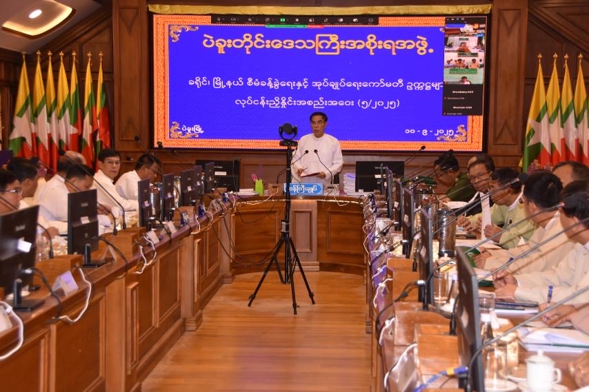 ထို့နောက် တက်ရောက်လာသည့် ခရိုင်/မြို့နယ်စီမံခန့်ခွဲရေးနှင့် အုပ်ချုပ်ရေးကော်မတီဥက္ကဋ္ဌများက အုပ်ချုပ်ရေး၊ စီးပွားရေးနှင့် လူမှုရေးဆိုင်ရာကိစ္စရပ်များနှင့် ပတ်သက်၍ Power Point ဖြင့် အသေးစိတ်ရှင်းလင်းတင်ပြခဲ့ကြရာ သက်ဆိုင်ရာတိုင်းဒေသကြီးအစိုးရအဖွဲ့၊ ဝန်ကြီးများက ဒေသတွင်းလူမှုစီးပွားဘဝ ပိုမိုဖွံ့ဖြိုးတိုးတက်စေရေး ဝိုင်းဝန်းအကြံပြုတင်ပြဆွေးနွေးခဲ့ကြသည်။
