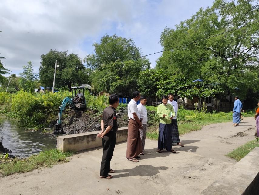 ထိုသို့ကွင်းဆင်းကြည့်ရှုစစ်ဆေးရာတွင် အမှတ် (၇) ရပ်ကွက်ရှိ မြိုရေဆိုးထုတ်မြောင်းအား မြိုနယ်စည်ပင်သာယာရေးအဖွဲမှ အင်ဂျင်နီယာ ဦးဇော်မျိုးသက်၏ ကြီးကြပ်မှုနှင့်အတူ ဝန်ထမ်းများက စက်ယန္တရားဖြင့် မိုးရာသီကာလရေမြောင်းများ ပိတ်ဆိုမှုမရှိစေရေးနှင့် ရေစီးရေလာကောင်းမွန်စေရေးအတွက် ဆည်ယူရှင်းလင်းဆောင်ရွက်နေမှုအခြေအနေများအား မြိုနယ်စီမံခန့်ခွဲရေးနှင့်အုပ်ချုပ်ရေးကော်မတီဥက္ကဋ္ဌ ဦးမျိုးသက်ကျော်နှင့်အဖွဲဝင်များ၊ ကြည့်ရှုစစ်ဆေး ဆောင်ရွက်ခဲ့ကြောင်း မြိုနယ်စီမံခန့်ခွဲရေးနှင့်အုပ်ချုပ်ရေးကော်မတီထံမှ သိရသည်။
