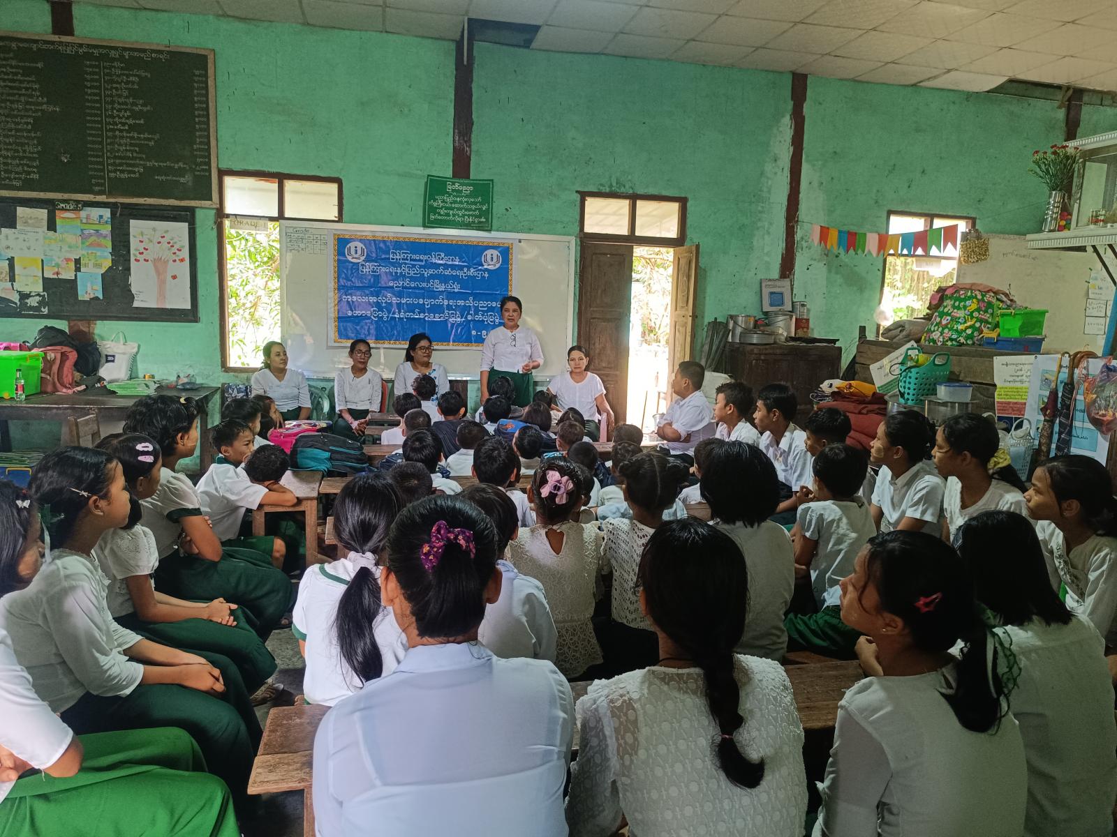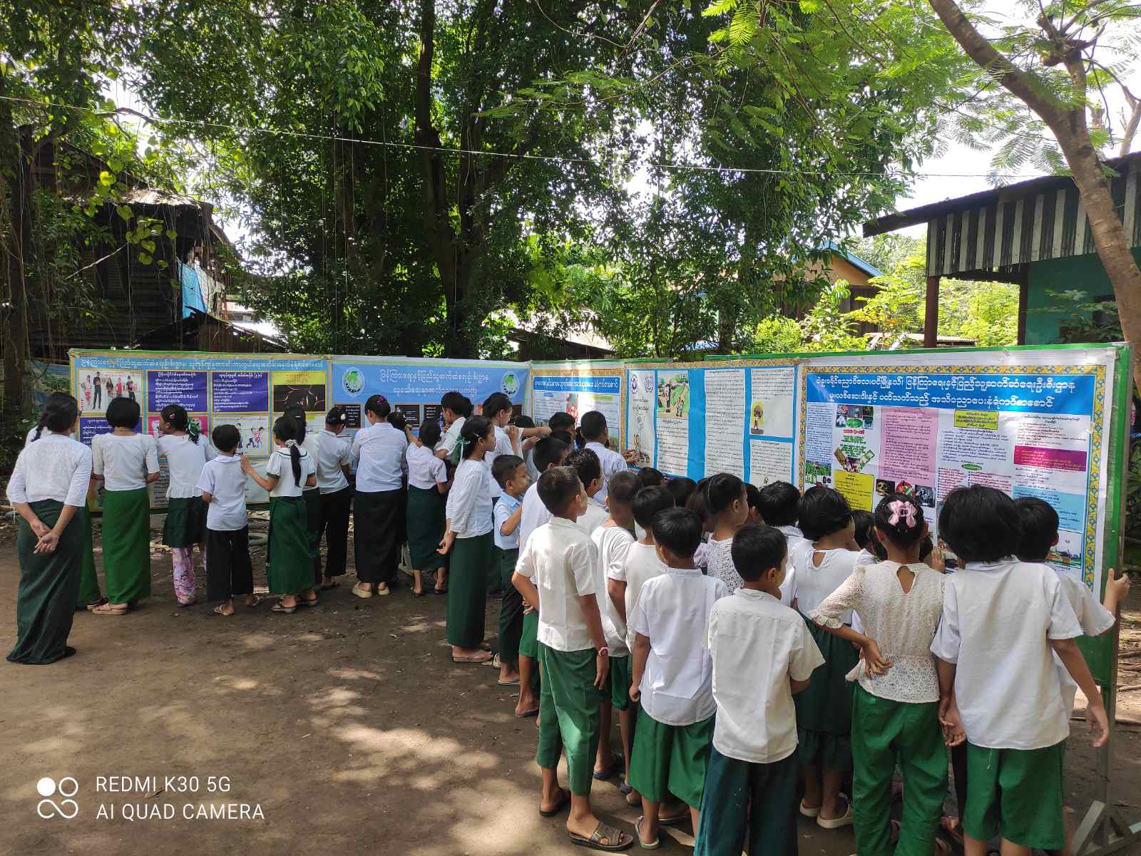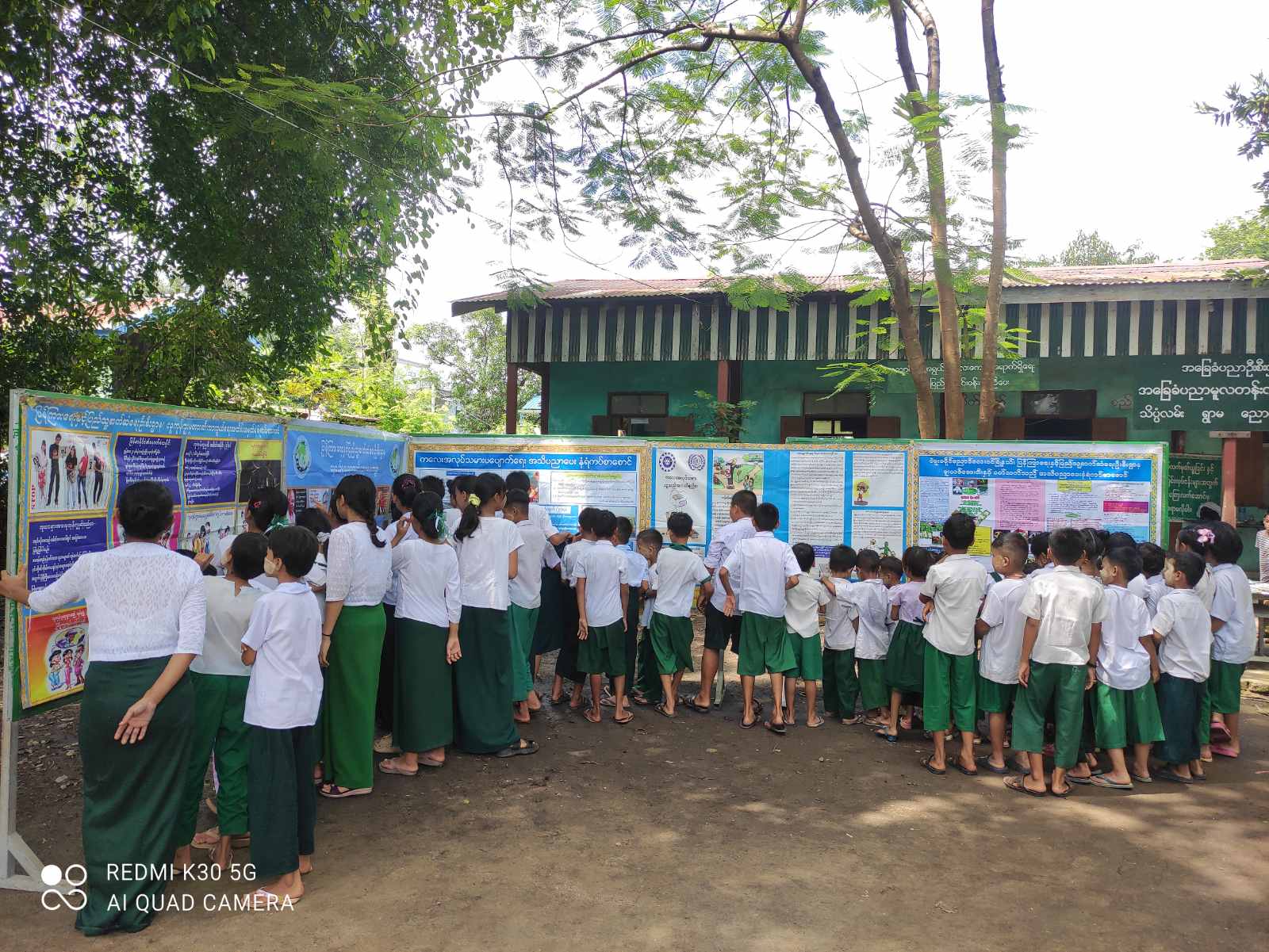ဆက်လက်၍ မြို့နယ်ပြန်ကြားရေးနှင့်ပြည်သူ့ဆက်ဆံရေးဦးစီးဌာနမှ ဝန်ထမ်းများက ကျောင်းသား၊ ကျောင်းသူများအား အသိပညာဗဟုသုတရရှိစေမည့် စာအုပ်စာစောင်များ ဖတ်ရှုစေခြင်း၊ ကလေးအလုပ်သမားပပျောက်ရေး အသိပညာပေးနံရံကပ်စာစောင်၊ လူကုန်ကူးမှုတားဆီးကာကွယ်ရေး အသိပညာပေးနံရံကပ်စာစောင်နှင့် မူးယစ်ဆေးဝါးနှင့် ပတ်သက်သည့် အသိပညာပေးနံရံကပ်စာစောင်များ ပြသခြင်းတို့ ဆောင်ရွက်ခဲ့ရာ ကျောင်းသား၊ ကျောင်းသူများမှ စိတ်ပါဝင်စားစွာဖြင့် ကြည့်ရှုလေ့လာမှတ်သားခဲ့ကြကြောင်း သိရသည်။