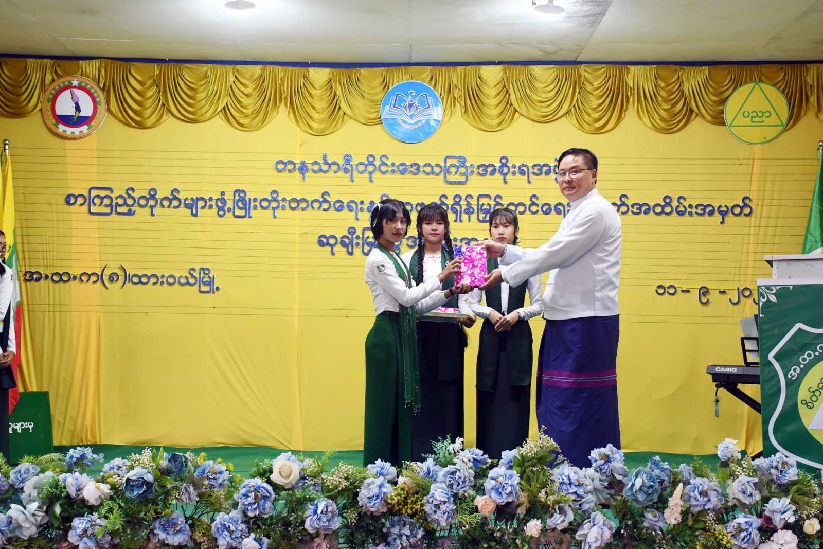 ယင်းနောက် တိုင်းဒေသကြီးလမ်းပန်းဆက်သွယ်ရေးဝန်ကြီးဦးအောင်ဇော်လှိုင်၊ တိုင်းဒေသကြီး တိုင်းရင်းသားရေးရာဝန်ကြီး ဦးစောမာတင်လူသာ၊ တိုင်းဒေသကြီးဥပဒေချုပ်ဦးအုန်းသန်း၊ တိုင်းဒေသကြီးပြန်ကြားရေးနှင့်ပြည်သူ့ဆက်ဆံရေးဦးစီးဌာန ညွှန်ကြားရေးမှူးဒေါ်မြင့်မြင့်ခိုင်၊ တိုင်းဒေသကြီးပညာရေး ညွှန်ကြားရေးမှူးဦးဝင်းနောင်တို့က ပြိုင်ပွဲဝင်ကျောင်းသားကျောင်းသူများကို ဂုဏ်ပြုလက်ဆောင်များပေးအပ်ကြသည်။