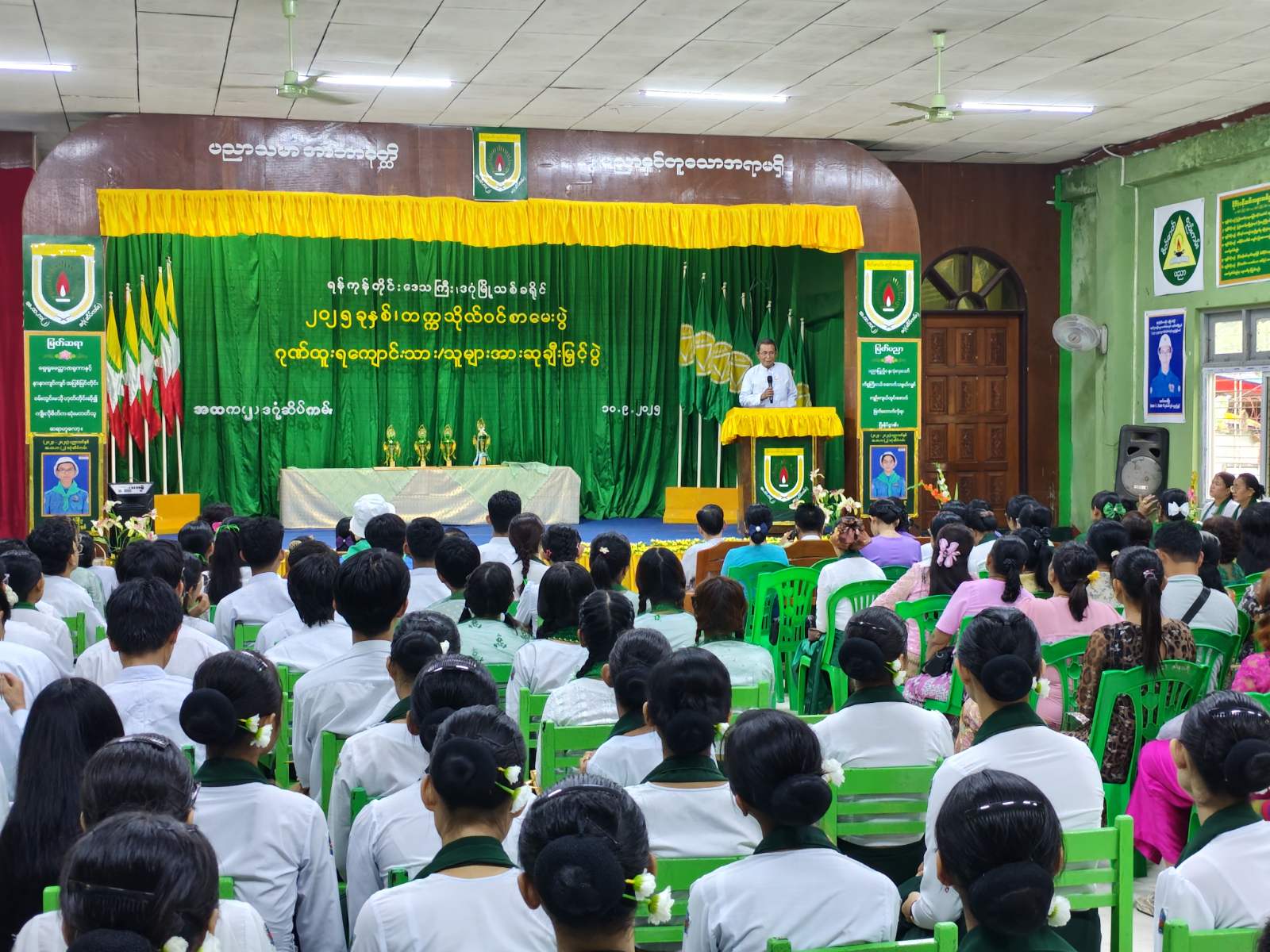 ရန်ကုန်တိုင်းဒေသကြီး၊ ဒဂုံမြို့သစ်ခရိုင်၊ ဒဂုံမြို့သစ်(ဆိပ်ကမ်း)မြို့နယ်၌ ၂၀၂၅ခုနှစ်၊ တက္ကသိုလ်ဝင်စာမေးပွဲတွင် ထူးချွန်စွာအောင်မြင်ခဲ့ကြသည့် ဂုဏ်ထူးရ ကျောင်းသား၊ ကျောင်းသူများအား ဆုချီးမြှင့်ပွဲအခမ်းအနားကို ယမန်နေ့နံနက် ၉ နာရီက အမှတ်(၂) အခြေခံပညာအထက်တန်းကျောင်းခန်းမ၌ ကျင်းပခဲ့သည်။