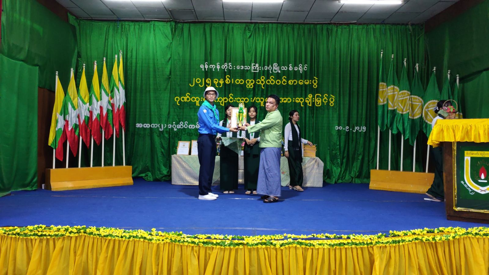 ထို့နောက် အခမ်းအနားသို့ တက်ရောက်လာကြသော ဌာနဆိုင်ရာတာဝန်ရှိသူများ၊ မိဘ၊ ဆရာအကျိုးတော်ဆောင်များနှင့် ကျောင်းအုပ်ဆရာ၊ ဆရာမကြီးများက ၂၀၂၅ခုနှစ် တက္ကသိုလ်ဝင်စာမေးပွဲတွင် ထူးချွန်စွာအောင်မြင်ခဲ့ကြသော (၅) ဘာသာဂုဏ်ထူးရှင်(၁)ဦး၊ (၄)ဘာသာဂုဏ်ထူးရှင်(၃)ဦး၊ (၃)ဘာသာဂုဏ်ထူးရှင်(၈)ဦး၊ (၂)ဘာသာဂုဏ်ထူးရှင်(၁၀)ဦးနှင့် (၁)ဘာသာဂုဏ်ထူးရှင်(၂၀)ဦး၊ စုစုပေါင်း(၄၂)ဦးတို့အား ဂုဏ်ပြုဆုများအသီးသီးချီးမြှင့်ခဲ့ကြသည်။ ဆက်လက်၍ ၂၀၂၅ခုနှစ် တက္ကသိုလ်ဝင်စားမေးပွဲတွင် အောင်ချက်အကောင်းဆုံးကျောင်း ပထမဆုရ အမှတ်(၂)အခြေခံပညာအထက်တန်းကျောင်း၊ အောင်ချက်အကောင်းဆုံးကျောင်း ဒုတိယဆုရအမှတ်(၁) အခြေခံပညာအထက်တန်းကျောင်းနှင့် အောင်ချက်အကောင်းဆုံးကျောင်း တတိယဆုရ အမှတ်(၃) အခြေခံပညာအထက်တန်းကျောင်းတို့အား ဆုများချီးမြှင့်ပေးခဲ့သည်။ ထို့နောက် ဂုဏ်ထူးရကျောင်းသား၊ ကျောင်းသူများကိုယ်စား (၅)ဘာသာဂုဏ်ထူးရှင် မောင်အောင်လင်းက ကျေးဇူးတင်စကားပြောကြားခဲ့ကြောင်း သိရသည်။ အခမ်းအနားသို့ ခရိုင်ပညာရေးမှူး၊ မြို့နယ်အထွေထွေအုပ်ချုပ်ရေးဦးစီးဌာနမှ ဒုတိယမြို့နယ်အုပ်ချုပ်ရေးမှူး၊ မြို့နယ်စီမံခန့်ခွဲရေးနှင့် အုပ်ချုပ်ရေးကော်မတီအဖွဲ့ဝင်များ၊ မြို့နယ်ပညာရေးမှူးနှင့် ကျောင်းအုပ်ကြီးများ၊ မြို့နယ်အမျိုးသမီးရေးရာနှင့် မိခင်နှင့်ကလေးစောင့်ရှောက်မှုအသင်းမှ တာဝန်ရှိသူများ၊ ကျောင်းအကျိုးတော်ဆောင်များ၊ ဆရာ၊ ဆရာမများ၊ ကျောင်းသား၊ ကျောင်းသူများ၊ ကျောင်းသားမိဘများတက်ရောက်ခဲ့ကြကြောင်း သိရသည်။