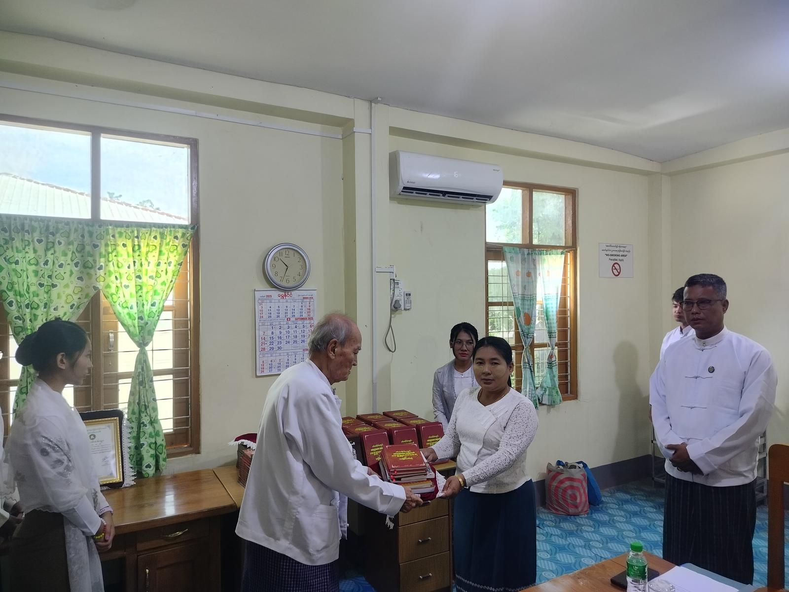 ထို့နောက် အလှူရှင်ဖြစ်သူ အမျိုးသားစာပေဆုရ စာရေးဆရာ အောင်စိုးက နေပြည်တော်သာသနာရေးမှူးရုံး၊ ပွင့်ဖြူမြို့နယ် လယ်ကိုင်းကျေးရွာစာကြည့်တိုက်နှင့် ဇမ္ဗူသီရိမြို့နယ် ပြန်ကြားရေးနှင့်ပြည်သူ့ဆက်ဆံရေးဦးစီးဌာနတို့အား မင်္ဂလာတိုက်ကျောင်း၊ ပဓာနနာယက ဆရာတော် ဘဒ္ဒန္တကေသရ၏ ဘဝဖြစ်တော်စဉ်စာအုပ်၊ မဲခေါင်စာပေဆုရ နေမင်းသန်းက မြန်မာဘာသာဖြင့် ရေးဖွဲ့ပူဇော်ပြီး ပါမောက္ခ ဒေါက်တာ ဇော်ထွန်းက အင်္ဂလိပ်ဘာသာပြန်ဆို ရေးဖွဲ့ပူဇော်သည့် သီကုံးပန်ဆင် ကဗျာ ဗုဒ္ဓဝင် စာအုပ်တို့အား ပေးအပ်လှူဒါန်းခဲ့ပြီး နေပြည်တော်သာသနာရေးမှူးရုံး ညွှန်ကြားရေးမှူးက ဗုဒ္ဓဝင်ဆိုင်ရာ စာအုပ်များ ပေးအပ်လှူဒါန်းခြင်းနှင့် စပ်လျဉ်း၍ ကျေးဇူးတင်စကား ပြောကြားပြီး အလှူရှင် အမျိုးသားစာပေဆုရ စာရေးဆရာ အောင်စိုးအား ဂုဏ်ပြုမှတ်တမ်းလွှာနှင့် သာသနာရေးဦးစီးဌာနက ထုတ်ဝေသည့် သာသနာရောင်ခြည် စာအုပ်များအား ပြန်လည်ပေးအပ်ကာ အခမ်းအနား တက်ရောက်လာကြသူများက ဗုဒ္ဓသာသနံ စိရံ တိဋ္ဌတု သုံးကြိမ်ရွတ်ဆိုကာ အခမ်းအနားကို ရုပ်သိမ်းခဲ့ကြောင်း သိရှိရသည်။