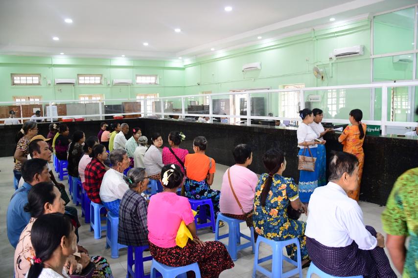 ပြည်ထောင်စုနယ်မြေ၊ နေပြည်တော်၊ ပျဉ်းမနားမြို့နယ်၌ အသက် ၈၅ နှစ်နှင့်အထက် သက်ကြီးဘိုးဘွားများအား လူမှုရေးပင်စင်ထောက်ပံ့ငွေများ ပေးအပ်ခြင်းကို ယမန်နေ့ နံနက်ပိုင်းတွင် ပျဉ်းမနားမြို့နယ် မြန်မာ့စီးပွားရေးဘဏ်ခွဲ၌ ထောက်ပံ့ပေးအပ်လျက်ရှိသည်။