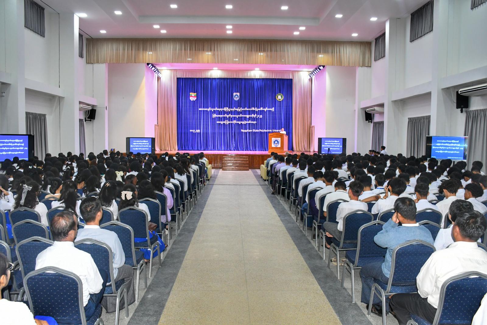 အားကစားနှင့်လူငယ်ရေးရာဝန်ကြီးဌာနနှင့် နေပြည်တော်ကောင်စီတို့ ပူးပေါင်း၍ ကျင်းပသည့် မြန်မာ့အနာဂတ်မျက်နှာစာ လူငယ်မဟာဗျူဟာဖိုရမ် ၂ဝ၂၅ တက်ရောက်ခဲ့သည့် နေပြည်တော် လူငယ်ကိုယ်စားလှယ်များမှ ဆွေးနွေးပွဲအတွေ့အကြုံများအား ပြန်လည်ဝေမျှခြင်း စကားဝိုင်းဆွေးနွေးပွဲ အခမ်းအနားကို ယနေ့နံနက်ပိုင်းက Naypyitaw State Polytechnic University (NSPU)၌ ကျင်းပရာ အခမ်းအနားသို့ နေပြည်တော်ကောင်စီဥက္ကဋ္ဌ ဦးသန်းထွန်းဦး၊ အားကစားနှင့်လူငယ်ရေးရာဝန်ကြီးဌာန ဒုတိယဝန်ကြီး ဦးဇင်မင်းထက်၊ နေပြည်တော် ကောင်စီဝင်များ၊ ညွှန်ကြားရေးမှူးချုပ်များ၊ တက္ကသိုလ်အသီးသီးမှ ပါမောက္ခချုပ်များနှင့် ဒုတိယပါမောက္ခချုပ်များ၊ ဌာနဆိုင်ရာများ၊ တက္ကသိုလ်အသီးသီးနှင့် အခြေခံပညာကျောင်းမှ ကျောင်းသား၊ ကျောင်းသူများ တက်ရောက်သည်။