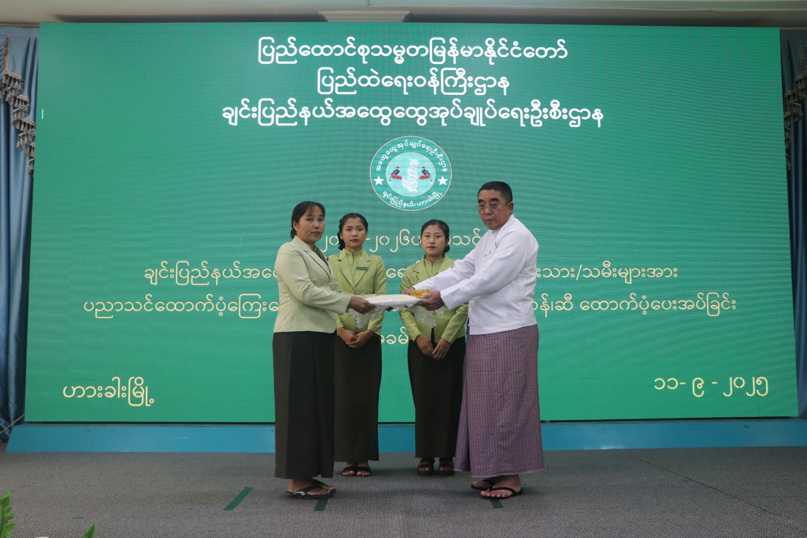 ၂၀၂၅−၂၀၂၆ ပညာသင်နှစ် ချင်းပြည်နယ်အထွေထွေအုပ်ချုပ်ရေးဦးစီးဌာန ဝန်ထမ်းသား၊ သမီးများအား ပညာသင်ထောက်ပံ့ကြေးပေးအပ်ခြင်းနှင့် ဝန်ထမ်းများအား ဆန်၊ ဆီထောက်ပံ့ပေးအပ်ခြင်းအခမ်းအနားကို စက်တင်ဘာလ ၁၁ ရက် မွန်းလွဲ ၂ နာရီခွဲက ဟားခါးမြို့၊ ချင်းပြည်နယ် အစိုးရအဖွဲ့ရုံးရှိ ပြည်နယ်အထွေထွေအုပ်ချုပ်ရေးဦးစီးဌာန အစည်းအဝေးခန်းမ၌ကျင်းပရာ ပြည်နယ်ဝန်ကြီးချုပ် ဒေါက်တာဝုန်ဆွန်းထန်၊ ပြည်နယ်တရားလွှတ်တော်တရားသူကြီးချုပ် ဦးနေစိုး၊ လုံခြုံရေးနှင့်နယ်စပ်ရေးရာဝန်ကြီး ဗိုလ်မှူးကြီးခင်မောင်ထွေး၊ သယံဇာတရေးရာဝန်ကြီး ဦးကောလ်လျန်ထန်း၊ ပြည်နယ်ဥပဒေချုပ် ဦးဆွန်ဒုတ်ကျင့်၊ ပြည်နယ်အထွေထွေအုပ်ချုပ်ရေးဦးစီးဌာနမှ အရာထမ်း၊ အမှုထမ်းများနှင့် ဝန်ထမ်းသား၊ သမီးများတက်ရောက်ကြသည်။