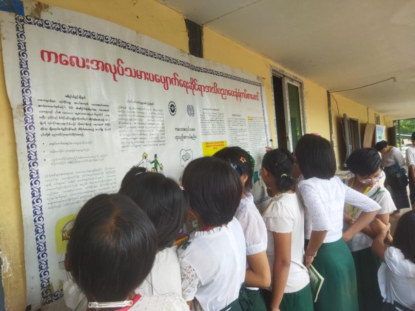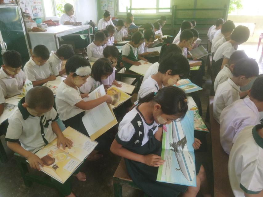 ထို့နောက် စာကြည့်တိုက်လက်ထောက်-၃ ဒေါ်စုဝေနှင်း ဘုတ်ပြားပြဇာတ်၊ စက္ကူပြဇာတ်ပုံပြင်များပြောကြားခြင်း၊ စာအုပ်စာစောင်များဖတ်ရှုစေခြင်းများ ဆောင် ရွက်ခဲ့ပြီး သဘာဝဘေးကြိုတင်ကာကွယ်ရေး နံရံကပ်စာစောင်နှင့် ကလေးအလုပ်သမားပပျောက်ရေးအသိပညာပေးနံရံကပ်စာစောင်များပြသခြင်း၊ ကလေးစာဖတ်ခန်းဝန်ဆောင်မှုတို့ဆောင်ရွက်ခဲ့ရာ ကျောင်းသား၊ ကျောင်းသူများက စိတ်ပါဝင်စားစွာလေ့လာကြည့်ရှုမှတ်သားခဲ့ကြောင်း သိရသည်။