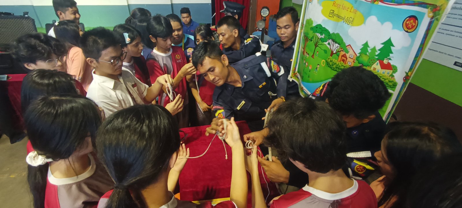 ထိုသို့ ဆောင်ရွက်ရာတွင် ရန်ကင်းမြို့နယ်၊ အမှတ် (၁၃)ရပ်ကွက်၊ ဓမ္မာရုံလမ်း၊ အမှတ်(၂၇)ရှိ NIEC ကိုယ်ပိုင်ကျောင်းမှ ကျောင်းသား၊ ကျောင်းသူများအား မီးဘေးနှင့်သဘာဝဘေးအန္တရာယ်ကြိုတင်ကာကွယ်ရေး (Kaeru Caravan) အစီအစဉ်အား ဆောင်ရွက်ခဲ့ရာ ကျောင်းသား၊ ကျောင်းသူ (၁၀၀)ဦးနှင့် ဆရာ၊ ဆရာမ (၁၀)ဦးတို့က စိတ်ပါဝင်စားစွာ ပါဝင်လေ့လာလေ့ကျင့်ခဲ့ကြကြောင်း သိရသည်။