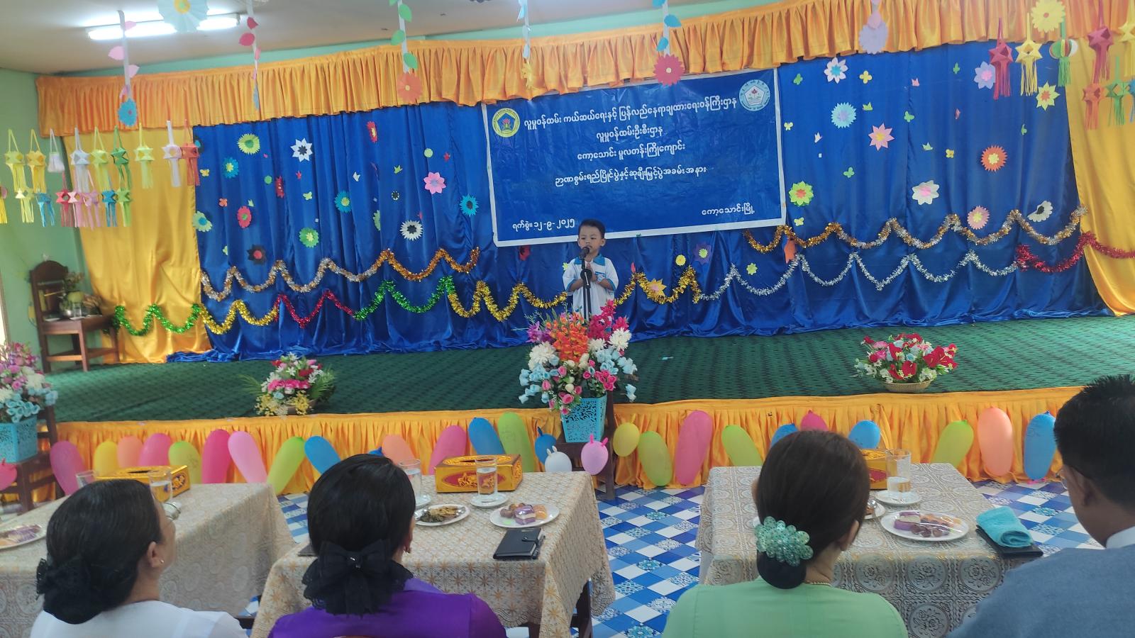 ယင်းနောက် အကြီးဆင့်ကလေးများမှ တစ်ဦးချင်းကဗျာရွတ်ဆိုပြိုင်ခြင်း၊ အငယ်ဆင့်ကလေးများမှ တစ်ဦးချင်းကဗျာရွတ်ဆိုပြိုင်ခြင်း၊ အကြီးဆင့်ကလေးများမှ တစ်ဦးချင်း ပုံပြင်ပြောပြိုင်ခြင်း၊ အငယ်ဆင့် A,B,C ရွတ်ဆိုပြိုင်ခြင်းနှင့်စုပေါင်းကဗျာရွတ်ဆိုပြိုင်ခြင်းများ ဆောင်ရွက်ခဲ့ပြီး ကလေးငယ်များမှ ကပြဖျော်ဖြေခဲ့ကြသည်။