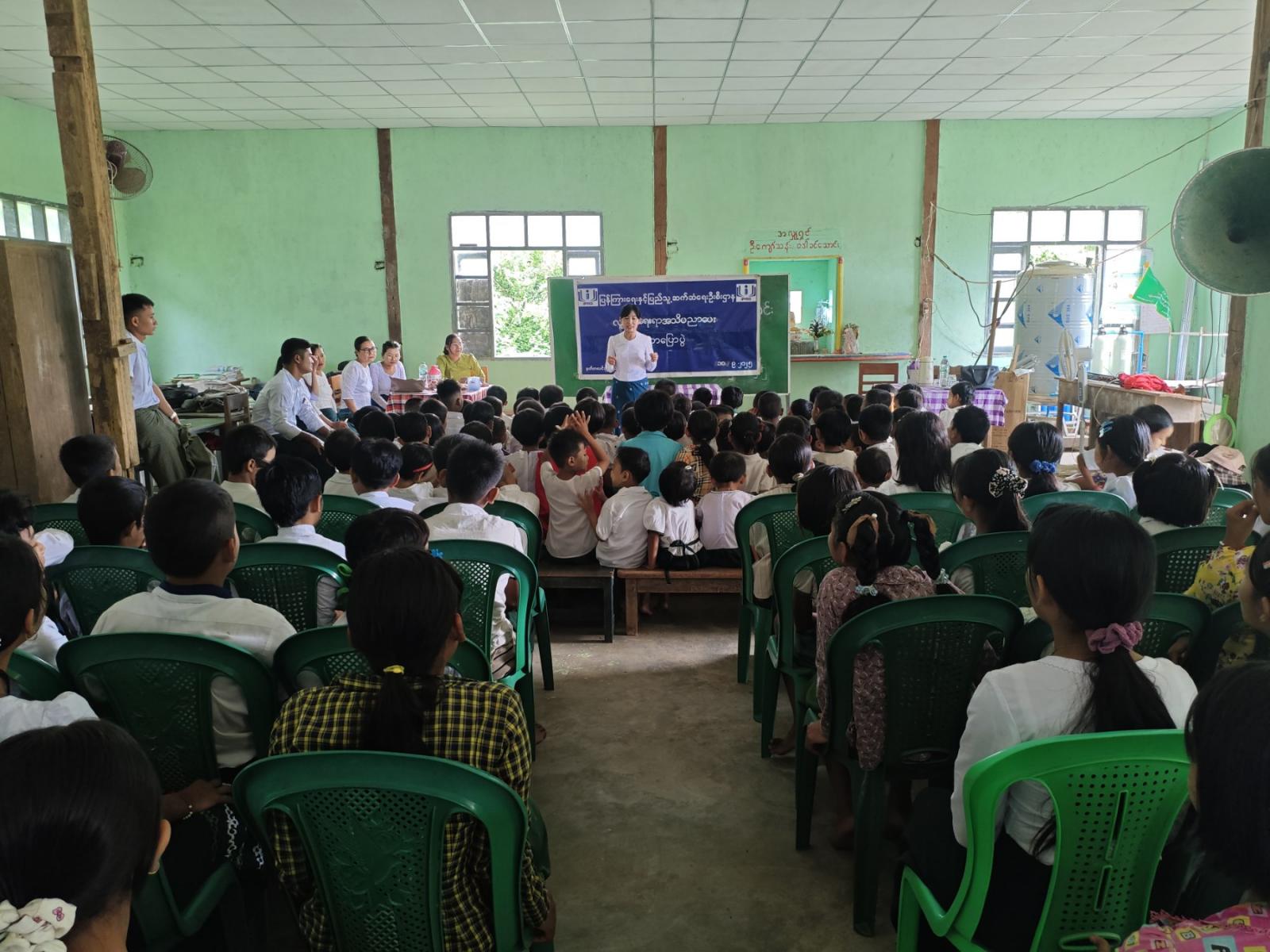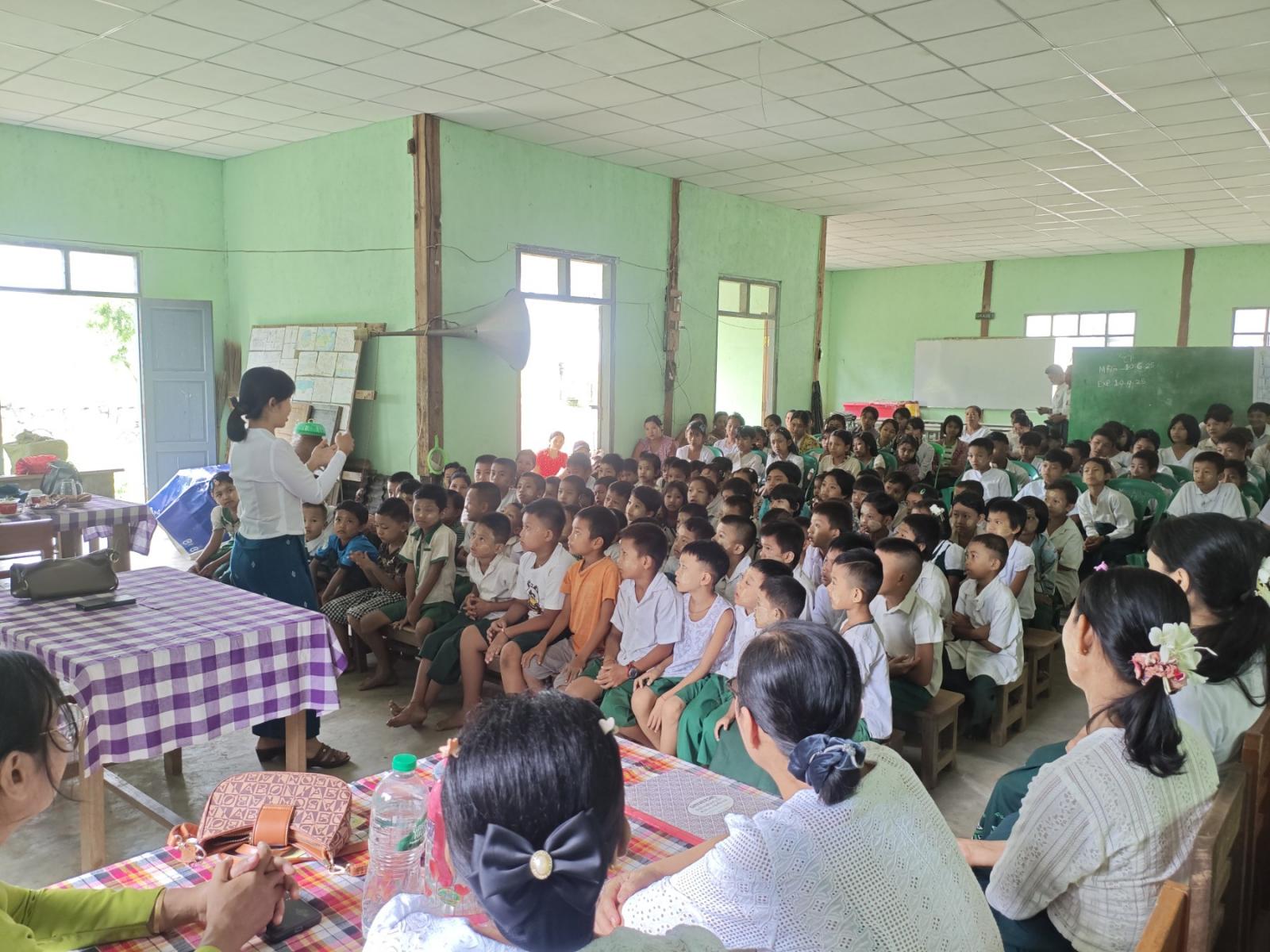 ထို့နောက် ကလေးအလုပ်သမားပပျောက်ရေး အသိပညာပေး နံရံကပ်စာစောင်၊ သဘာဝဘေးအန္တရာယ်ဆိုင်ရာ အသိပညာပေး နံရံကပ်စာစောင်များ ပြသခြင်းတို့ ဆောင်ရွက်ခဲ့ရာ ကျောင်းသား၊ ကျောင်းသူများမှ စိတ်ပါဝင်စားစွာ လေ့လာကြည့်ရှုမှတ်သားခဲ့ကြောင်း သိရသည်။