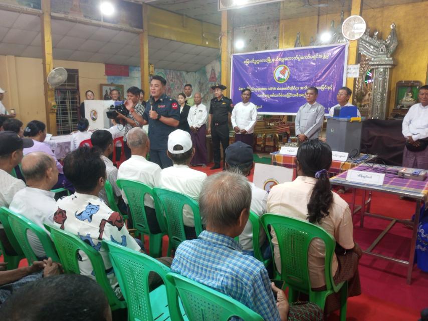 ဦးစွာ မြို့နယ်ရွေးကောက်ပွဲကော်မရှင်အဖွဲ့ခွဲဥက္ကဋ္ဌက အမှာစကားပြောကြားပြီး မြို့နယ်ရွေးကောက်ပွဲ အရာရှိက မြန်မာအီလက်ထရောနစ်မဲပေးစက်အကြောင်း သိကောင်းစရာများ၊ ပါတီစုံဒီမိုကရေစီ ရွေးကောက်ပွဲကြီး အောင်မြင်စွာကျင်းပနိုင်ရေးအတွက် မြန်မာအီလက်ထရောနစ်မဲပေးစက်ဖြင့် စမ်းသပ်မဲပေးမှု အဆင့်ဆင့်ကို ရှင်းလင်းပြသခဲ့ပေးကြပြီး တက်ရောက်လာကြသည့် မြို့နယ်စီမံခန့်ခွဲရေးနှင့်အုပ်ချုပ်ရေးကော်မတီ အဖွဲ့ဥက္ကဋ္ဌနှင့် အဖွဲ့၀င်များ၊ မြို့နယ်ရွေးကောက်ပွဲကော်မရှင်အဖွဲ့ခွဲဥက္ကဋ္ဌနှင့် အဖွဲ့ဝင်များ၊ မြို့နယ်အဆင့်ဌာနဆိုင်ရာ အသီးသီးမှတာ၀န်ရှိသူများ မြို့နယ်ရွေးကောက်ပွဲကော်မရှင်မှ ဦးစီးအရာရှိနှင့် ဝန်ထမ်းများ၊ ရပ်ကွက်ကော်မရှင်အဖွဲ့ခွဲမှဥက္ကဋ္ဌ၊ အတွင်းရေးမှူးနှင့် အဖွဲ့ဝင်များ၊ ရပ်ကွက်အုပ်ချုပ်ရေးမှူးနှင့် အဖွဲ့ဝင်များ၊ လူမှုကူညီရေးအဖွဲ့များ မဲဆန္ဒရှင်ပြည်သူများ စုစုပေါင်း (၂၀၄၂) ဦးခန့်မှ စိတ်ပါဝင်စားစွာ လက်တွေ့စမ်းသပ်မဲ ပေးခဲ့ကြကြောင်း သိရသည်။