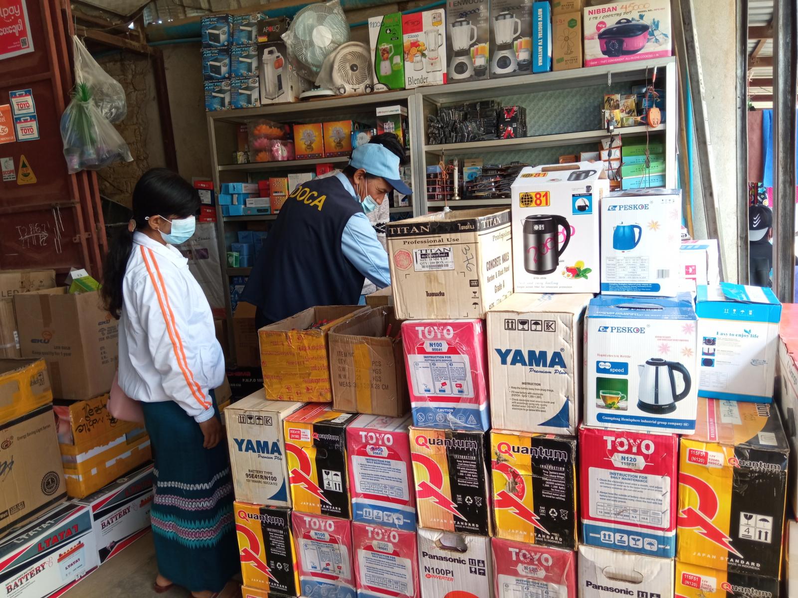 ထိုသို့ဆောင်ရွက်ရာတွင် နောင်ချိုမြို့နယ် စားသုံးသူရေးရာဦးစီးဌာနနှင့် ပြန်ကြားရေးနှင့် ပြည်သူ့ဆက်ဆံရေးဦးစီးဌာနတို့ ပူးပေါင်း၍ မြို့ပေါ် လျှပ်စစ်ပစ္စည်းအရောင်းဆိုင်များသို့ ကွင်းဆင်းကာ ဂက်(စ်)မီးဖို၊ ရေပူချိုးစက်၊ ညှော်စုပ်စက်၊ အကင်စက်၊ ထမင်းပေါင်းအိုး၊ လျှပ်စစ်မီးဖို၊ အခြားအိမ်သုံးပစ္စည်းများနှင့် အမှတ်တံဆိပ်တူပစ္စည်းများသည် နယ်စပ်လမ်းကြောင်းများမှတစ်ဆင့် တရားမဝင် ဝင်ရောက်လျက်ရှိသည့်အတွက် စျေးကွက်အတွင်းရောင်းချခြင်း ရှိ/မရှိ ကွင်းဆင်းစစ်ဆေးခဲ့ခြင်းဖြစ်ကြောင်း သိရသည်။