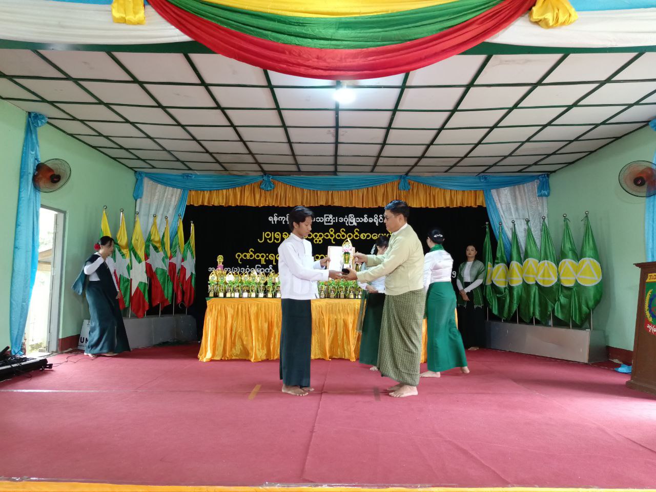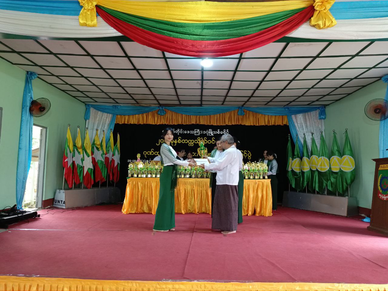 ရန်ကုန်တိုင်းဒေသကြီး၊ ဒဂုံမြို့သစ်(မြောက်ပိုင်း)မြို့နယ် ၂၀၂၄ -၂၀၂၅ ပညာသင်နှစ် တက္ကသိုလ်ဝင်စာမေးပွဲ ထူးချွန်ဆုနှင့် ဘက်စုံပညာရည်ချွန်ဆုများရရှိခဲ့သော ကျောင်းသား၊ ကျောင်းသူများအား ဆုချီးမြှင့်ခြင်းအခမ်းအနားကို ယမန်နေ့နံနက် (၉)နာရီက အမှတ်(၁) အခြေခံပညာအထက်တန်းကျောင်း မေခခန်းမ၌ ကျင်းပသည်။
