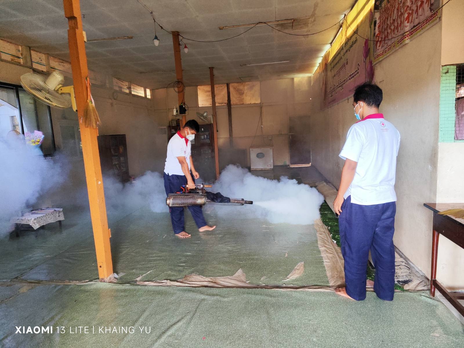 ထိုသို့ ဆောင်ရွက်ရာတွင် မြို့နယ်ပြည်သူ့ကျန်းမာရေးဦးစီးဌာနမှ ဒုတိယညွှန်ကြားရေးမှူး ဒေါက်တာဝင်းဝင်းမာ၏ စီစဉ်ညွှန်ကြားမှုဖြင့် မြို့နယ်ပြည်သူ့ကျန်းမာရေးဦးစီးဌာနမှ ဦးစီးအရာရှိ ဒေါ်နေခြည်လင်း ဦးဆောင်သော ကျန်းမာရေးဝန်ထမ်များ။ ရပ်ကွက်/ကျေးရွာ အုပ်ချုပ်ရေးများ၊ မိခင်နှင့်ကလေးစောင့်ရှောက်ရေးအဖွဲ့ဝင်များ၊ အမျိုးသမီးရေးရာအဖွဲ့ဝင်များ၊ စည်ပင်သာယာဝန်ထမ်းများနှင့် ပူးပေါင်းအဖွဲ့သည် ကုန်းတလပေါင်းရပ်ကွက် ရွှေစေတီလမ်းတို့တွင် သွေးလွန်တုပ်ကွေးရောဂါ အဖြစ်များသော သုခစာရီသီလရှင်ကျောင်းနှင့် ပတ်ဝန်းကျင်အား ပိုးလောက်လမ်းပေါက်ပွားမှုမှ ကာကွယ်နိုင်ရေး ရေတင်ကျန်နိုင်သော ဘူးခွက်များ၊ ရေပုံး၊ ရေအိုးများ၊ ဘုရားပန်းအိုးများကို ဖုံး၊ သွန်၊ လဲ၊ စစ် လုပ်ငန်းများဆောင်ရွက်ပြီး ပညာသိင်္ဂီသီလရှင်စာသင်ကျောင်းအား အုတ်ကန်များတွင် အဘိတ် (Abate) ဆေးခတ်ခြင်း၊ ဆေးမှုတ်ခြင်းနှင့် ပတ်ဝန်းကျင်သန့်ရှင်းရေးလုပ်ငန်းများကို အရှိန်အဟုန်မြှင့် ဆောင်ရွက်လျက်ရှိကြောင်း သိရသည်။