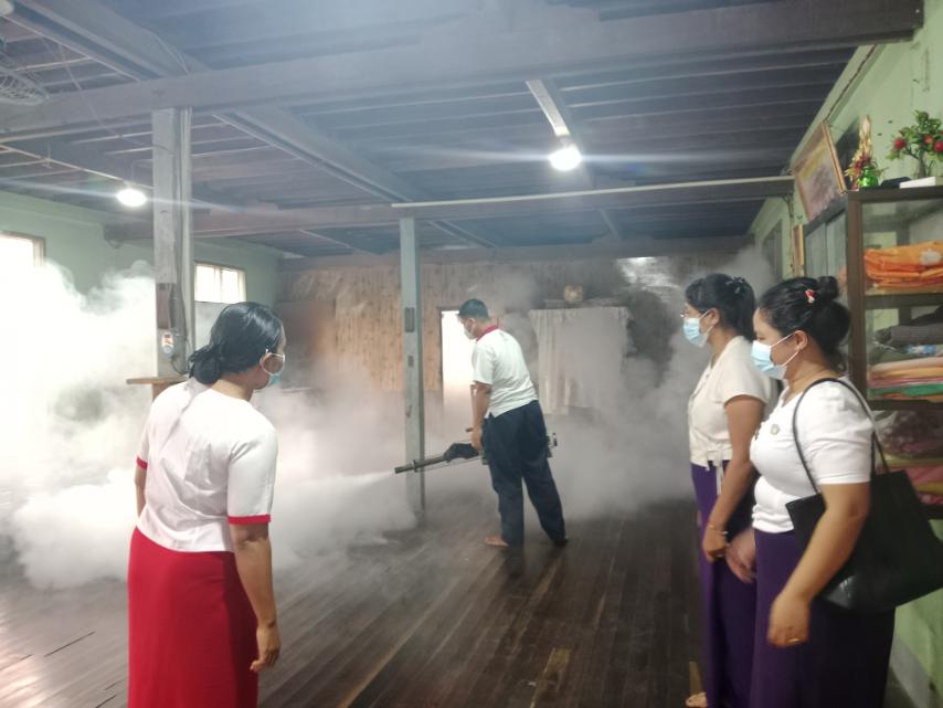 ရန်ကုန်တိုင်းဒေသကြီး မင်္ဂလာဒုံမြို့နယ်တွင် တိုင်းကျန်းမာရေးဦးစီးမှူး၏ လမ်းညွှန်ချက်အရ သွေးလွန်တုပ်ကွေးရောဂါ ကာကွယ်ရေးလုပ်ငန်းများကို အရှိန်အဟုန်မြှင့် ဆောင်ရွက်လျက်ရှိရာ မြို့နယ်ပြည်သူ့ကျန်းမာရေးဦးစီးဌာန လက်အောက်ရှိ ကုန်းတလပေါင်း RHC ပင်မအပိုင် ရွှေစေတီလမ်းရှိ သွေးလွန်တုပ်ကွေးဖြစ်ပွားသော သုခစာရီ သီလရှင်ကျောင်းသို့ မြို့နယ်ပြည်သူ့ကျန်းမာရေးဦးစီးဌာနနှင့် ပူးပေါင်းအဖွဲ့သည် ပိုးလောက်လမ်းကာကွယ်နှိမ်နင်းရေးအတွက် ယမန်နေ့ မွန်းလွဲပိုင်းက ကွင်းဆင်းဆောင်ရွက်သည်။