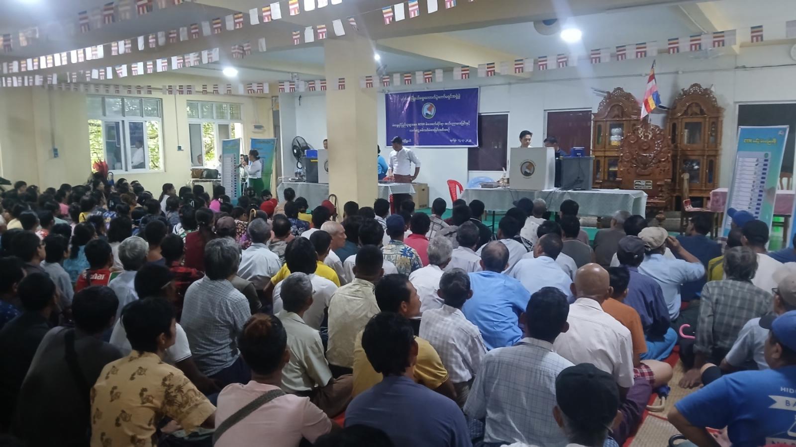 အဆိုပါ သတ်မှတ်စုရပ်နေရာများဖြစ်သော က္ကုစ္ဆာပုဏ္ဏဓမ္မာရုံ၊ တန့်ကြည့်တောင်ဘုရား၊ ရွှေပြည်အေးသီတဂူမျက်စိဆေးရုံခန်းမတို့၌ မဲဆန္ဒရှင်ပြည်သူများဖြစ်သည့် ကုန်းတလပေါင်းကျေးရွာအုပ်စုမှ (၃၃၃၆)ဦး၊ ပျဉ်းမပင်ကျေးရွာအုပ်စုမှ (၂၆၃၉)ဦးတို့အား ရွေးကောက်ပွဲနှင့်ပတ်သက်၍ မြို့နယ်ရွေးကောက်ပွဲကော်မရှင်အဖွဲ့ခွဲ အဖွဲ့ဝင်များ၊ ကြီးကြပ်သူအရာရှိများနှင့် တာဝန်ရှိသူများက အသိပညာပေးရှင်းလင်းပြောကြားခဲ့ပြီး မြန်မာအီလက်ထရောနစ်မဲပေးစက် (MEVM) ဖြင့် လက်တွေ့စမ်းသပ်မဲပေးခြင်းကို ကျေးရွာနေ မဲဆန္ဒရှင်ပြည်သူများနှင့်အတူ သက်ဆိုင်ရာဌာနဆိုင်ရာများ၊ ကျေးရွာအုပ်ချုပ်ရေးမှူးများက အနီးကပ်ကြီးကြပ် ပူးပေါင်းပါဝင်ဆောင်ရွက် ပေးကြကြောင်း သိရသည်။