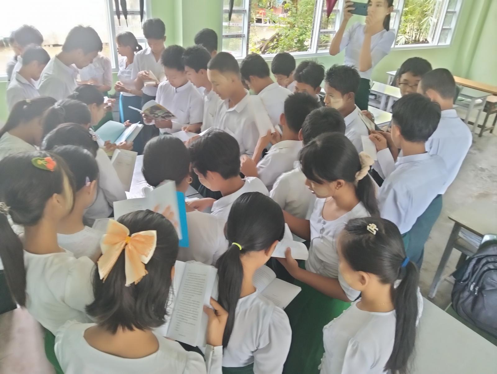 ထိုသို့ ကွင်းဆင်းဆောင်ရွက်ရာတွင် ပြန်ကြားရေးနှင့်ပြည်သူ့ဆက်ဆံရေးဦးစီးဌာန ဒုတိယဦးစီးမှူး ဒေါ်အိအိငြိမ်းက ကျောင်းသား၊ ကျောင်းသူများအနေဖြင့် ဗလငါးတန်နှင့်ပြည့်စုံစေရန်၊ ကျောင်းစာအပြင် ပြင်ပစာအုပ်စာစောင်များကို ဖတ်ရှုလေ့လာသော အလေ့အကျင့်ကောင်းများ ရှိစေရန်အတွက် ပြင်ပဗဟုသုတရရှိမည့် စာအုပ်များကို ငယ်စဉ်ကတည်းက ဖတ်ရှုလေ့လာစေလိုကြောင်းနှင့် ပြည်သူ့စာကြည့်တိုက်တွင် စာအုပ်/စာပေများ အခမဲ့လာရောက်ငှားရမ်းဖတ်ရှုခြင်းဖြင့် စာဖတ်ရှိန်မြင့်မားလာစေရန် စသည့်အကြောင်းအရာများကို အကျယ်တဝင့် ဟောပြောခဲ့သည်။