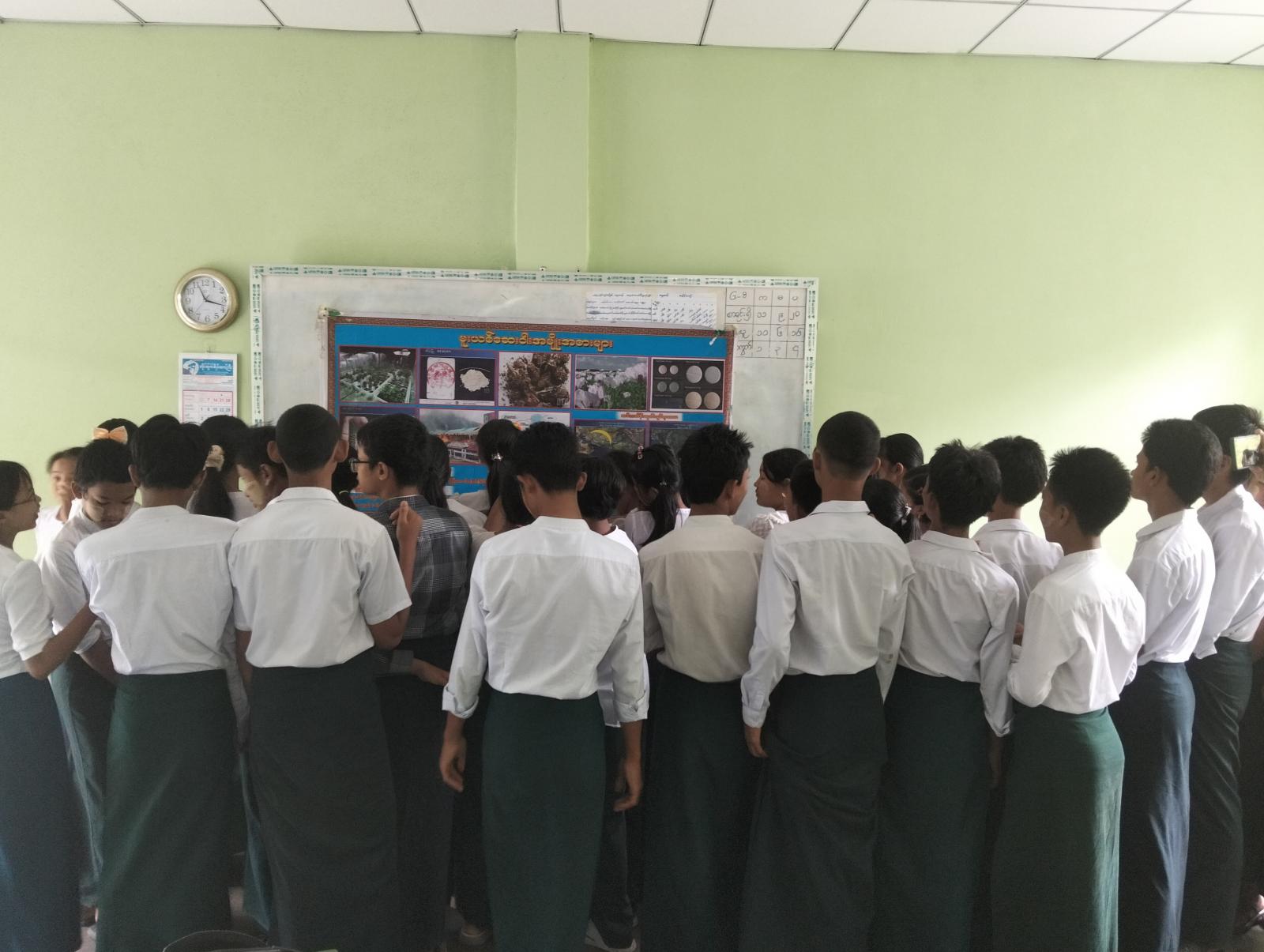 ထို့နောက် ပြန်ကြားရေးနှင့်ပြည်သူ့ဆက်ဆံရေးဦးစီးဌာနမှ ခင်းကျင်းပြသထားသော မူးယစ်ဆေးဝါးအမျိုးအစားများ၊ မူးယစ်ဆေး၏ ဆိုးကျိုးအန္တရာယ်များအကြောင်း အသိပညာပေး နံရံကပ်စာစောင်နှင့် သုတ၊ ရသစာအုပ်စာစောင်များအား ကျောင်းသား၊ ကျောင်းသူများက စိတ်ပါဝင်စားစွာဖြင့် ကြည့်ရှုလေ့လာခဲ့ကြောင်း သိရသည်။