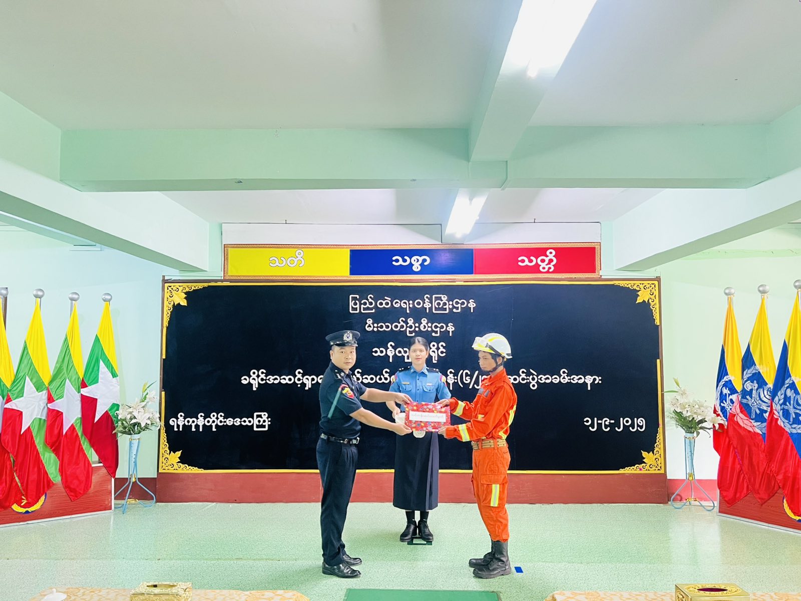ပြည်ထဲရေးဝန်ကြီးဌာန၊ မီးသတ်ဦးစီးဌာန၊ သန်လျင်ခရိုင်မှ ကြီးမှုးဖွင့်လှစ်ခဲ့သော ခရိုင်အဆင့် ရှာဖွေကယ်ဆယ်ရေးသင်တန်း(၆/၂၀၂၅)ဆင်းပွဲကို စက်တင်ဘာ ၁၃ ရက်နေ့ နံနက်တွင် သန်လျင်မြို့ရှိ ခရိုင်မီးသတ်ဦးစီးဌာန သင်တန်းခန်းမ၌ ကျင်းပခဲ့သည်။
