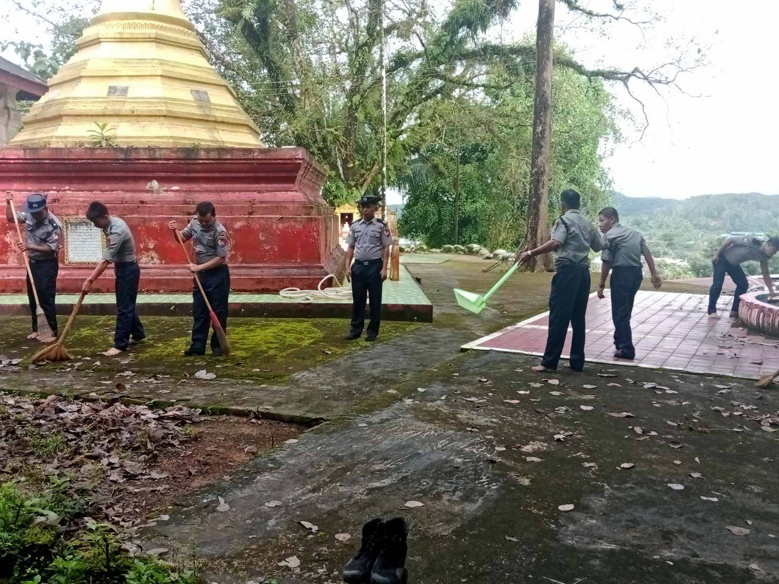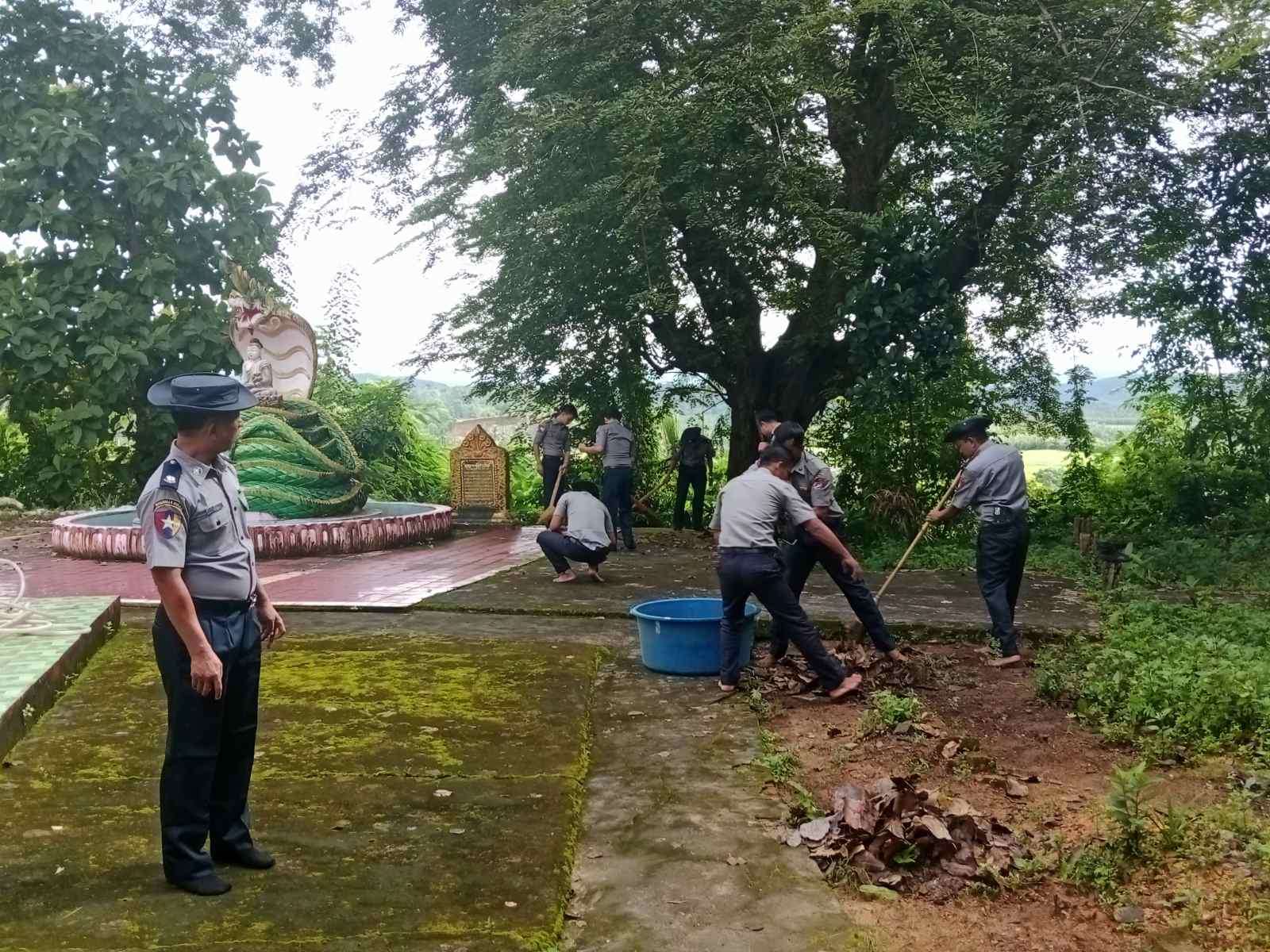 ထိုသို့ ဆောင်ရွက်ရာတွင် ပုလောမြို့နယ်ရဲတပ်ဖွဲ့မှ မြို့နယ်ရဲတပ်ဖွဲ့မှူး ရဲမှူး ဝင်းထိုက် ဦးဆောင်၍ တပ်ဖွဲ့ဝင် (၂၀) ဦးတို့က နာဂကလျာဏီသိမ်တော်ဘုရားကုန်းပေါ်တွင် အမှိုက်များ၊ သစ်ပင်ခြုံနွယ်များ ခုတ်ထွင်ရှင်းလင်းခြင်း၊ ရေစီးရေလာကောင်းမွန်အောင် မြောင်းဖော်ခြင်းများ ဆောင်ရွက်ခဲ့ကြောင်း သိရသည်။