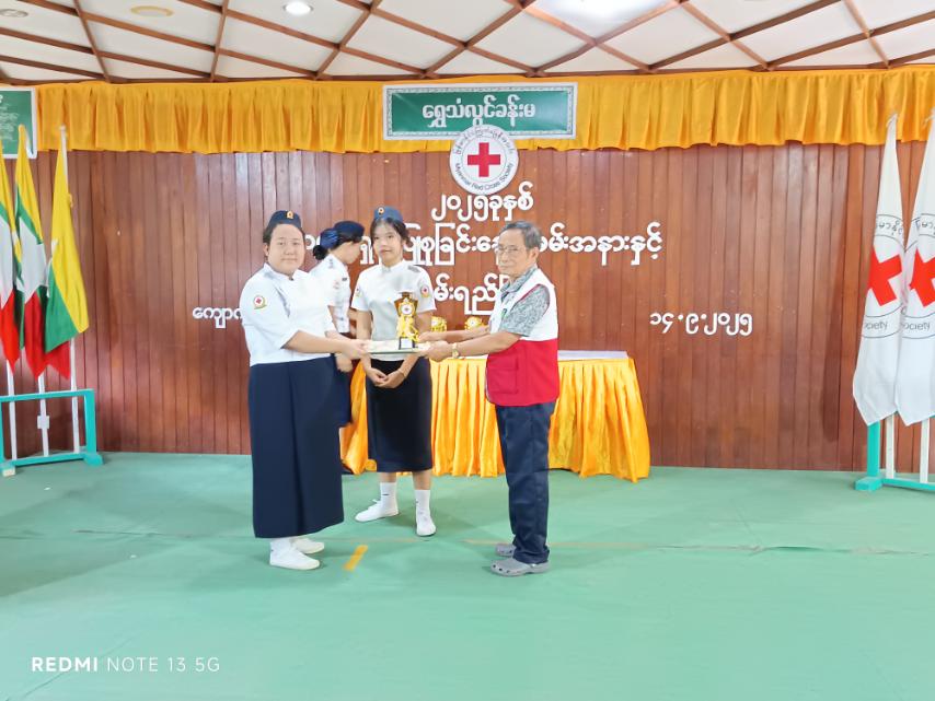 ထို့နောက်၂၀၂၅ခုနှစ်ကမ္ဘာ့ရှေးဦးပြုစုခြင်းနေ့ အထိမ်းအမှတ်စာပေပြိုင်ပွဲတွင် ပါ၀င်ယှဉ် ပြိုင်ခဲ့သည့် တပ်ဖွဲ့၀င်အားဂုဏ်ပြုဆုနှင့် ၂၀၂၅ ခုနှစ် ကမ္ဘာ့ရှေးဦးပြုစုခြင်းနေ့ အထိမ်းအမှတ် စွမ်းရည်ပြိုင်ပွဲတွင် ပါ၀င်ယှဉ်ခဲ့သော အခြေခံပညာအထက်တန်းကျောင်း မြိုင်သာယာ၊ အခြေခံ ပညာ အ-မ-က မူလွန်အနောက်ပိုင်း၊အခြေခံပညာအ-မ-က အရှေ့ပိုင်း၊ အခြေ ခံပညာ အ-မ-က ပါဒဝကျောင်းတို့မှ ရှေးဦးပြုစုခြင်း အခြေခံသင်တန်းဆင်း ကျောင်းသား၊ ကျောင်းသူများမှ ဆုရရှိသူများကို တာဝန်ရှိသူများမှ အသီးသီးဆုချီးမြှင့်ခဲ့သည်။ အဆိုပါအခမ်းအနားသို့ မြို့နယ်ကြက်ခြေနီအသင်းခွဲဥက္ကဋ္ဌ ဦးထွန်းရီနှင့်အမှုဆောင်များ ကြက်ခြေနီခရိုင်တပ်ဖွဲ့မှူး (တာဝန်) ဦးအောင်ကျော်ဦး၊မြို့နယ် ပြန်ကြားရေးနှင့်ပြည်သူ့ဆက်ဆံရေးဦးစီးဌာန၊ ဦးစီးအရာရှိ ဦးသန့်ဇင်ထွန်း၊ မြို့နယ်ကြက်ခြေနီတပ်ဖွဲ့မှူး(တာ၀န်) ဒေါ်လင်းလင်းထိုက်၊ ကျောင်းအုပ် ဆရာ ဆရာမများနှင့် ကျောင်း(၄)ကျောင်းမှ ရှေးဦးပြုစုခြင်း အခြေခံသင်တန်းဆင်း ကျောင်းသား၊ ကျောင်းသူများ တက်ရောက်ခဲ့သည်။