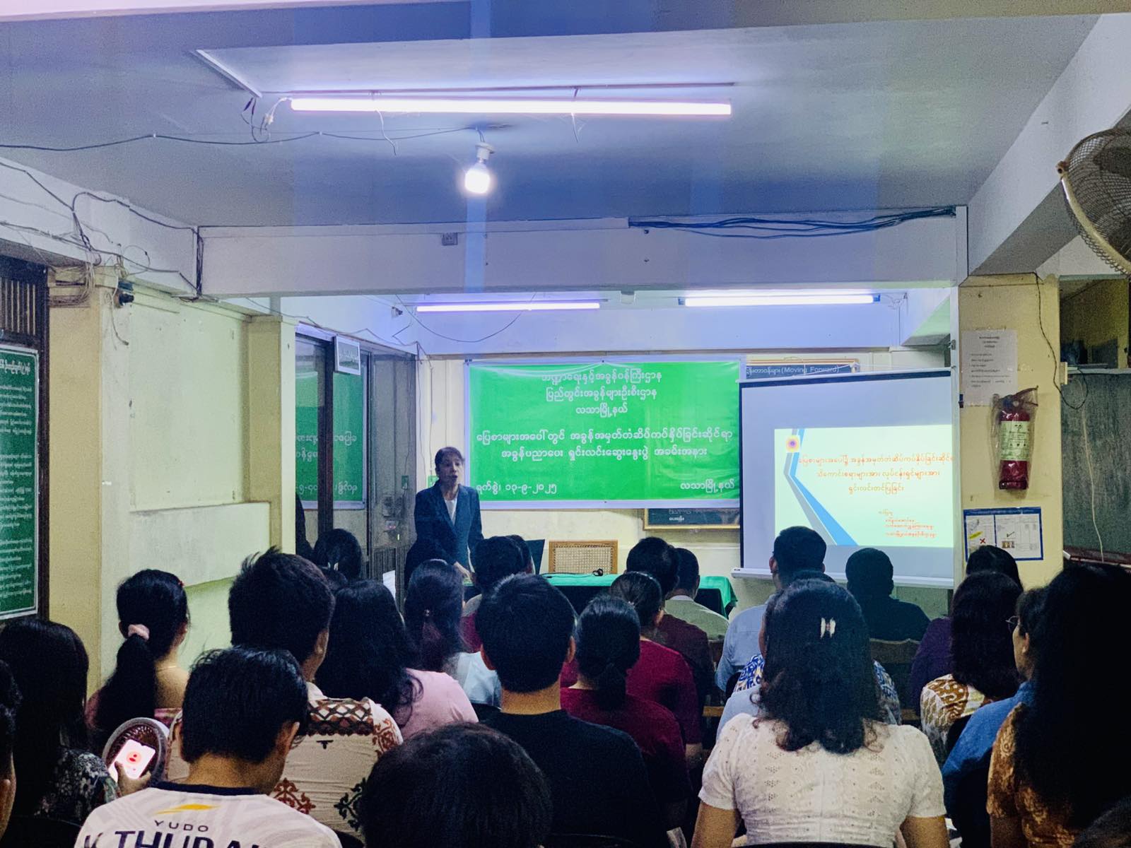 ရှေးဦးစွာ မြို့နယ်အခွန်ဦးစီးဌာနမှူး လက်ထောက်ညွှန်ကြားရေးမှူး ဒေါ်နွယ်အောင်မေက ပြေစာများပေါ်တွင် အခွန်အမှတ်တံဆိပ်ကပ်နှိပ်ခြင်းဆိုင်ရာ ကိစ္စရပ်များနှင့် စပ်လျဥ်းသည့် အခွန်ဆိုင်ရာ သိကောင်းစရာများကို ရှင်းလင်းဆွေးနွေးပြောကြားခဲ့သည်။