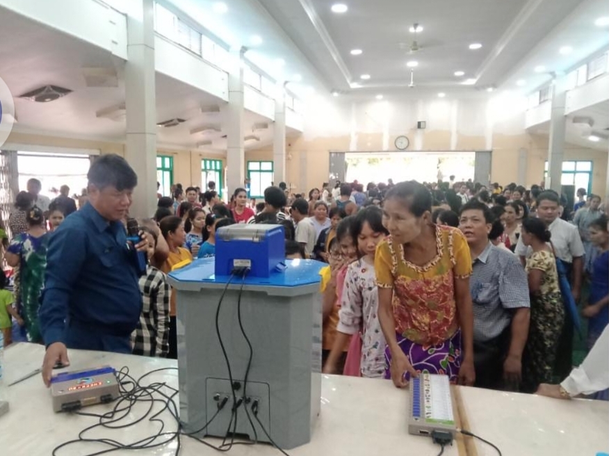 ရန်ကုန်တိုင်းဒေသကြီး မင်္ဂလာဒုံခရိုင် ရွှေပြည်သာမြို့နယ်တွင် မဲဆန္ဒရှင်ပြည်သူများ မြန်မာအီလက်ထရောနစ်မဲပေးစက် (MEVM)အသုံးပြု၍ ဆန္ဒမဲပေးတတ်စေရန် ရည်ရွယ်၍ မဲပေးစက်ဆိုင်ရာ အသိပညာပေးခြင်းနှင့် လက်တွေ့စမ်းသပ်မဲပေးခြင်းကို ဆက်လက်ဆောင် ရွက်လျက်ရှိရာ ယမန်နေ့နံနက် ၉ နာရီမှမွန်းလွဲ ၃ နာရီအထိ အုပ်ဖိုကျေးရွာ၊ ကျောင်းကုန်းကျေး ရွာနှင့် လှော်ကားကျေးရွာတို့ရှိ သတ်မှတ်နေရာ (၅)ခု၌ ဆောင်ရွက်ခဲ့ကြသည်။