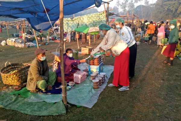 အဆိုပါ Mask Campaign ပြုလုပ်ရာတွင် မြန်မာနိုင်ငံရဲတပ်ဖွဲ့ဝင်များ၊ မြို့နယ်မီးသတ် တပ်ဖွဲ့ဝင်များ၊ ကျန်းမာရေးဦးစီးဌာနနှင့် စည်ပင်သာယာရေးဌာနမှ တာဝန်ရှိသူများက ယာယီပျံကျစျေးတွင် Mask (၁၀၀၀)ကျော်ကို ဒေသခံပြည်များ လက်ဝယ်အရောက် အခမဲ့ပေးဝေခဲ့ကြောင်း သိရသည်။