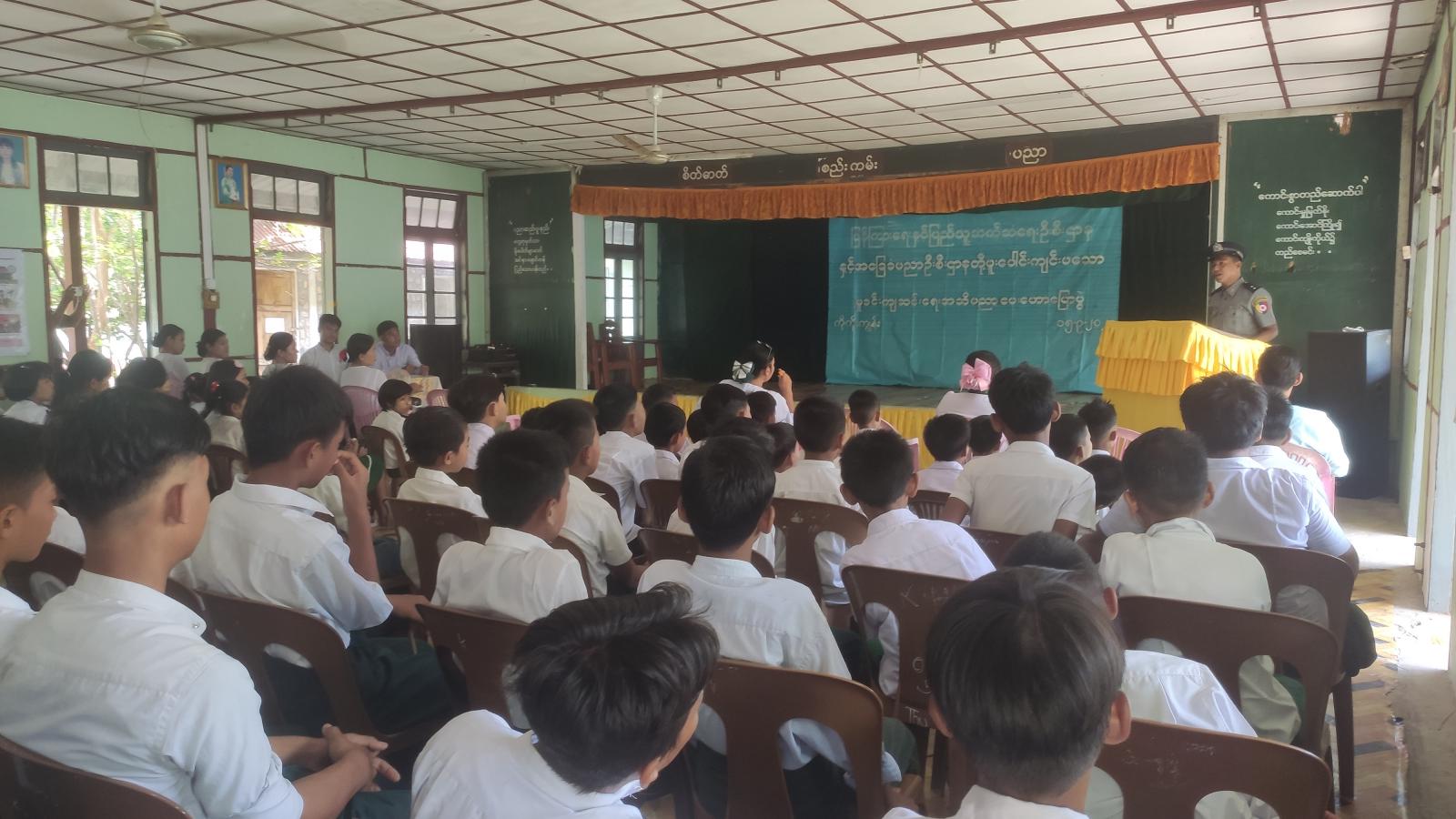 ဦးစွာမြို့နယ်ပြန်ကြားရေးနှင့်ပြည်သူ့ဆက်ဆံရေးဦးစီးဌာနမှဦးစီးအရာရှိဦးထွန်းထွန်းမှ ဟောပြောပွဲပြုလုပ်ရခြင်း၏ ရည်ရွယ်ချက်များကိုရှင်းလင်းပြောကြားခဲ့သည်။ ဆက်လက်၍ မြန်မာနိုင်ငံရဲတပ်ဖွဲ့ ရဲအုပ်အောင်နိုင်မှ မှုခင်းကျဆင်းရေးနှင့်ပတ်သက်၍ ယာဉ်စည်း၊ လမ်းစည်းဆိုင်ရာလိုက်နာရမည့် စည်းကမ်းချက်များ၊ လူကုန်ကူးမှုတားဆီးကာကွယ်ရေးနှင့်ပတ်သက်သည့် အကြောင်းအရာများ၊ မှူးယစ်ဆေးဝါး အန္တရာယ်နှင့်ပတ်သက်သည့် အကြောင်းအရာများကိုကျောင်းသား၊ ကျောင်းသူများအားအသိပညာ ဗဟုသုတရရှိစေရန် အကျယ်တဝင့်ရှင်းလင်းပြောကြားခဲ့ပြီး အခြေခံပညာကျောင်းအုပ် ဆရာမကြီးမှကျေးဇူးတင်စကား ပြန်လည်ပြောကြားခဲ့ကြောင်းသိရသည်။