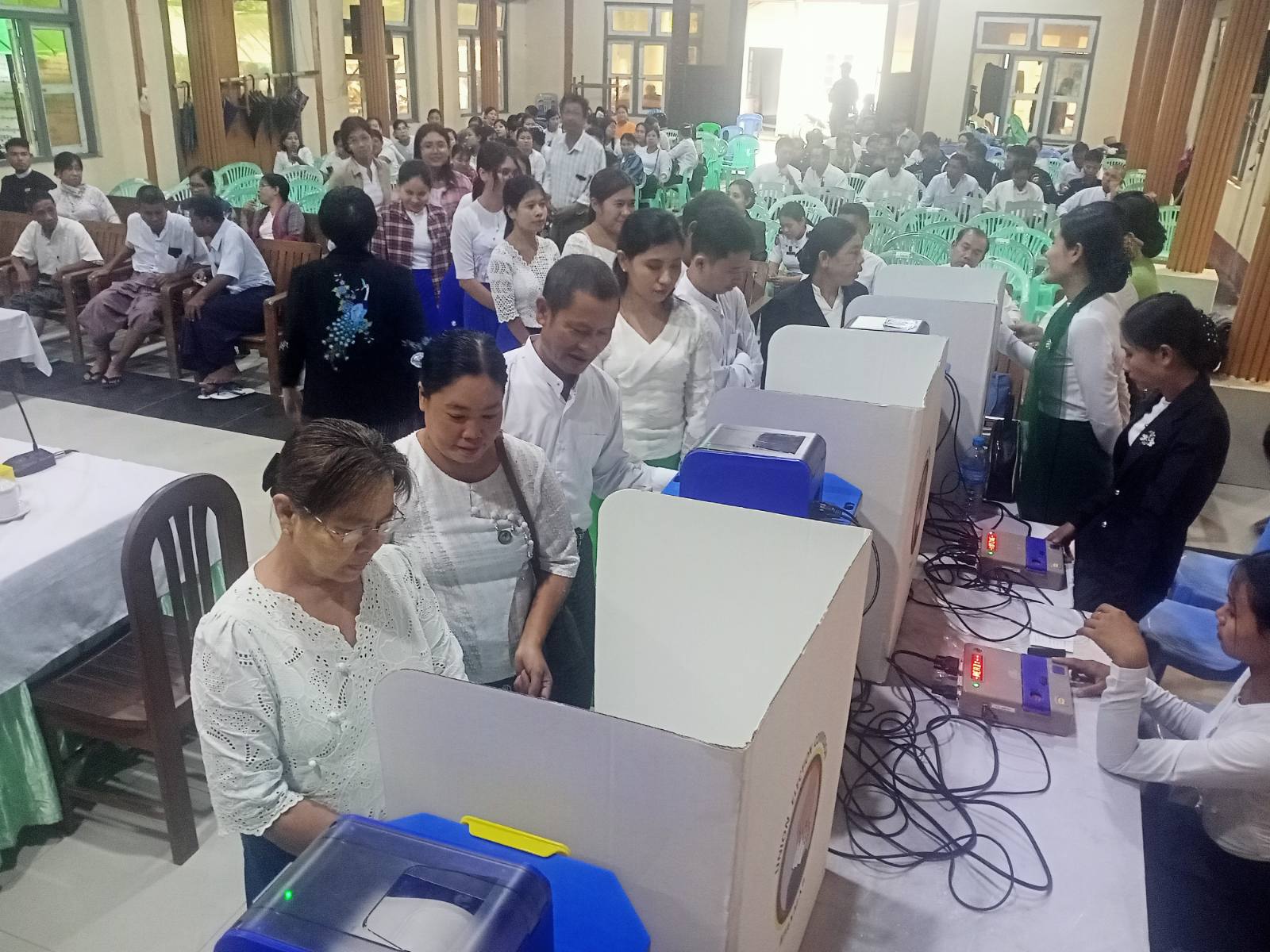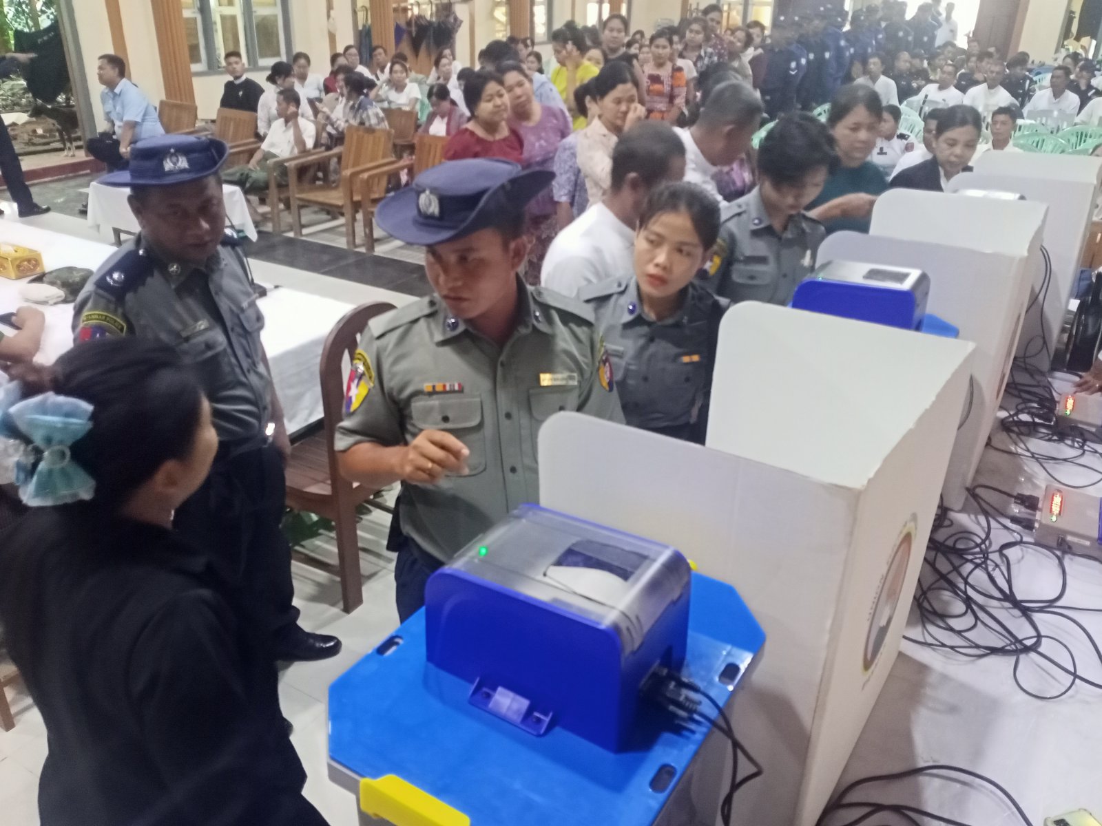 ယင်းနောက် တက်ရောက်လာကြသူများက မြန်မာအီလက်ထရောနစ်မဲပေးစက် (MEVM) မဲပေးစက်ဖြင့် ကိုယ်တိုင်လက်တွေ့မဲပေးကြကြောင်း သိရသည်။