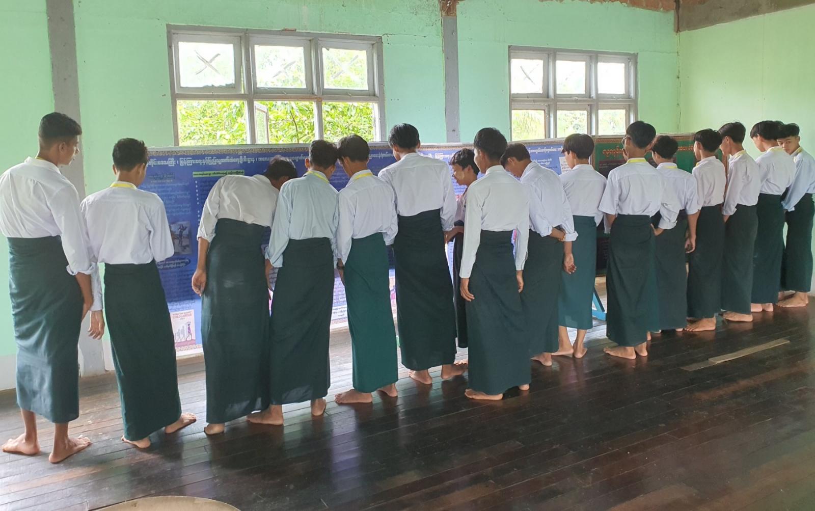 ထို့နောက် လူထုအခြေပြုခန်းမတွင် မြို့နယ်ပြန်ကြားရေးနှင့်ပြည်သူ့ဆက်ဆံရေးဦးစီးဌာနမှ ပြသထားသည့် လူကုန်ကူးမှုတိုက်ဖျက်ရေးနှင့် လူကုန်ကူးမှုအန္တရာယ်တားဆီးကာကွယ်ရေး အသိပညာပေးနံရံကပ်စာစောင်များနှင့် စာအုပ်ပြပွဲအား ကျောင်းသားများက စိတ်ပါဝင်စားစွာ ဖတ်ရှုလေ့လာခဲ့ကြကြောင်း သိရသည်။