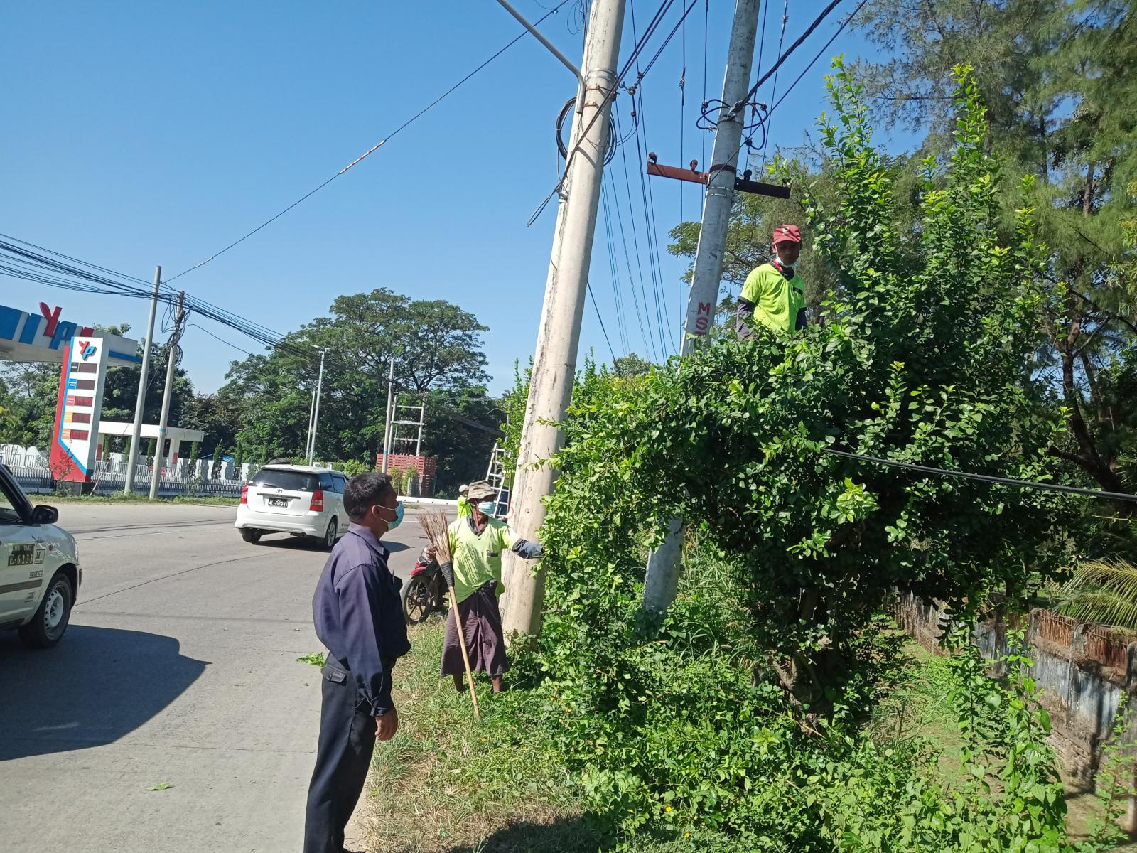 ဒဂုံမြို့သစ်(ဆိပ်ကမ်း)မြို့နယ်အတွင်းရှိ လျှပ်စစ်မီးကြိုးများပေါ်သို့ ညွတ်ကျသွယ်တန်းနေသော သစ်ပင်သစ်ကိုင်းများ၊နွယ်ပင်များ ရှင်းလင်းခြင်းလုပ်ငန်းကို ဒဂုံမြို့သစ်(ဆိပ်ကမ်း)မြို့နယ် မြို့နယ်စည်ပင်သာရေး ပန်းဥယျာဉ်အဖွဲ့မှ ယနေ့နံနက် (၁၀)နာရီက စတင်၍ သစ်ပင် သစ်ကိုင်းများ ခုတ်ထွင်ရှင်းလင်းခြင်းလုပ်ငန်း ဆောင်ရွက်လျက်ရှိကြောင်း သိရသည်။