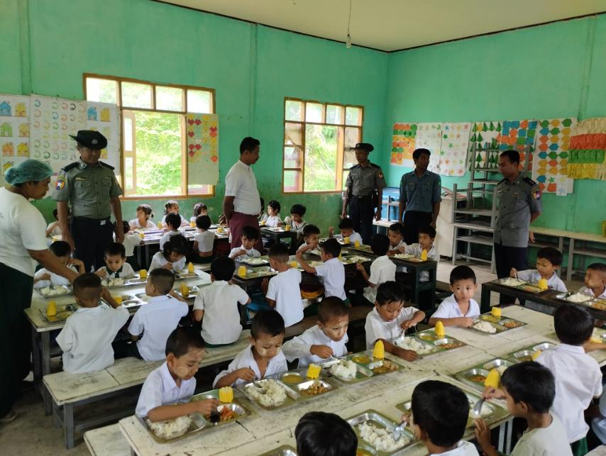 (KG)ကျောင်းသား၊ ကျောင်းသူများ ကျန်းမာသန်စွမ်းရေးနှင့်အဟာရပြည့်ဝစွာရရှိရေး၊ ခန္ဓာကိုယ်ကြီးထွားဖွံ့ဖြိုးရေး၊ ကျန်းမာကြံ့ခိုင်ရေး၊ ဦးနှောက်နှင့်ဉာဏ်ရည်ဖွံ့ဖြိုးရေးအတွက် အာဟာရပြည့်ဝသည့် ထမင်းနှင့်ဟင်းလျာများ၊ ပြောင်းဖူး၊ မုန့်နှင့် အချိုရေတို့ကို ကျွေးမွေးခဲ့ကြသည်။