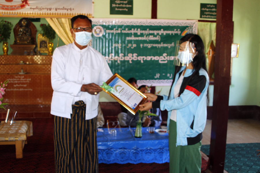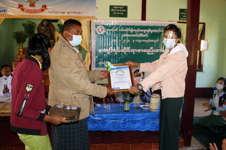 ဆက်လက်၍ မြို့နယ်သမဝါယမဦးစီးဌာနမှ ဦးစီးအရာရှိဦးတင်ထွန်း၊ သမဝါယမ အသင်းစုဥက္ကဋ္ဌ ဦးအောင်ဆယ်နှင့် တာဝန်ရှိသူများက ၂၀၁၈-၂၀၁၉ ပညာသင်နှစ်တွင် တက္ကသိုလ်ဝင်တန်း စာမေးပွဲအောင်မြင်ခဲ့သော အသင်းသား၊ အသင်းသူများ၏ သားသမီး တစ်ဘာသာဂုဏ်ထူးရှင် (၁)ဦး နှင့် ရိုးရိုးအောင်မြင်သူ (၃)ဦး စုစုပေါင်း ၄ ဦးကို ဂုဏ်ပြုငွေနှင့် ဂုဏ်ပြုမှတ်တမ်းလွှာများ ပေးအပ်ချီးမြှင့်ခဲ့သည်။