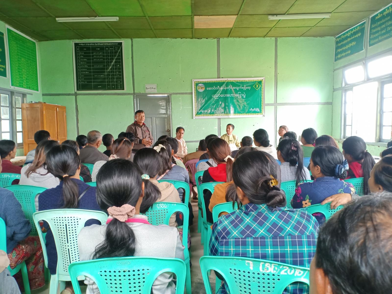 ချင်းပြည်နယ်အစိုးရ၏အစီအစဉ်ဖြင့် တီးတိန်မြို့၌ ဆောင်းသီးနှံပန်းတိုင်အထွက်ရရှိ ရေးပညာပေးဟောပြောပွံကို ယမန်နေ့နံနက်ပိုင်းက မြို့နယ်စိုက်ပျိုးရေးဦးစီးဌာတွင် ပြုလုပ်သည်။