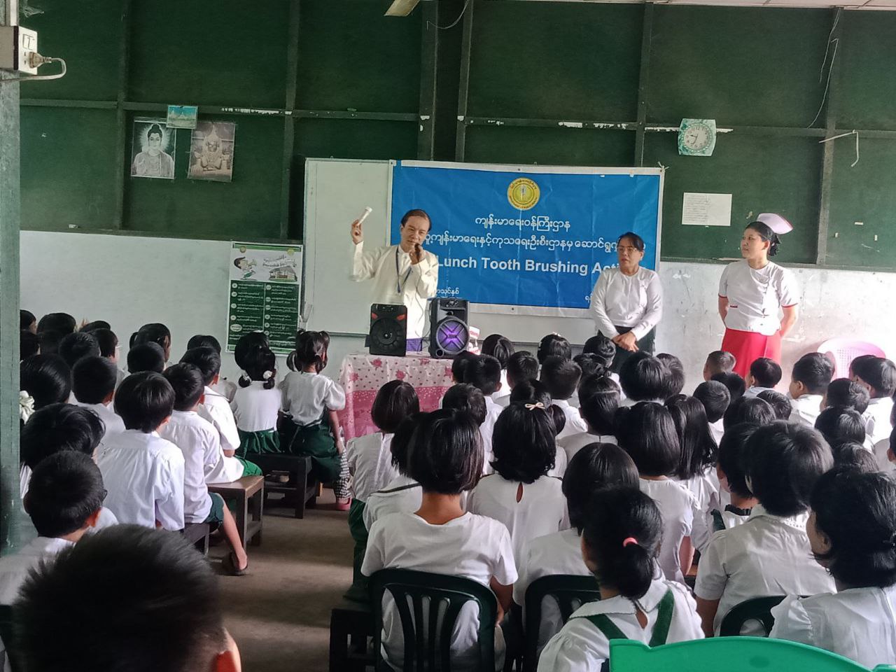 ရှေးဦးစွာ ရန်ကုန်တိုင်းပြည်သူ့ကျန်းမာရေးဦးစီးဌာနမှ လက်ထောက်ညွှန်ကြားရေးမှူး (သွားကျန်းမာ) ဒေါက်တာကွန်စတန်ဦးဆောင်၍ အနောက်ပိုင်းဆေးရုံကြီးမှ သွားနှင့် ခံတွင်းဆရာဝန်(၃)ဦး သာကေတသွားနှင့် ခံတွင်းအထူးကုဆေးရုံကြီးမှ သွားနှင့် ခံတွင်းဆရာဝန်(၂)ဦးနှင့် တောင်ဥက္ကလာပမြို့နယ် ပြည်သူ့ကျန်းမာရေးဦးစီးဌာနမှူးနှင့် ဝန်ထမ်းများပူးပေါင်း၍ အမှတ်(၆)အခြေခံပညာမူလတန်းကျောင်းနှင့် အမှတ်(၁၈)အခြေခံပညာမူလတန်းကျောင်းတို့တွင် နည်းစနစ်မှန်သွားတိုက်ခြင်း အမူအကျင့်စွဲမြဲပြီး သွားနှင့် ခံတွင်းရောဂါများ ကာကွယ်နိုင်စေရေးရည်ရွယ်ချက်ဖြင့် After Lunch tooth.brushing activity ကို ဆောင်ရွက်ခဲ့ကြောင်း သိရသည်။