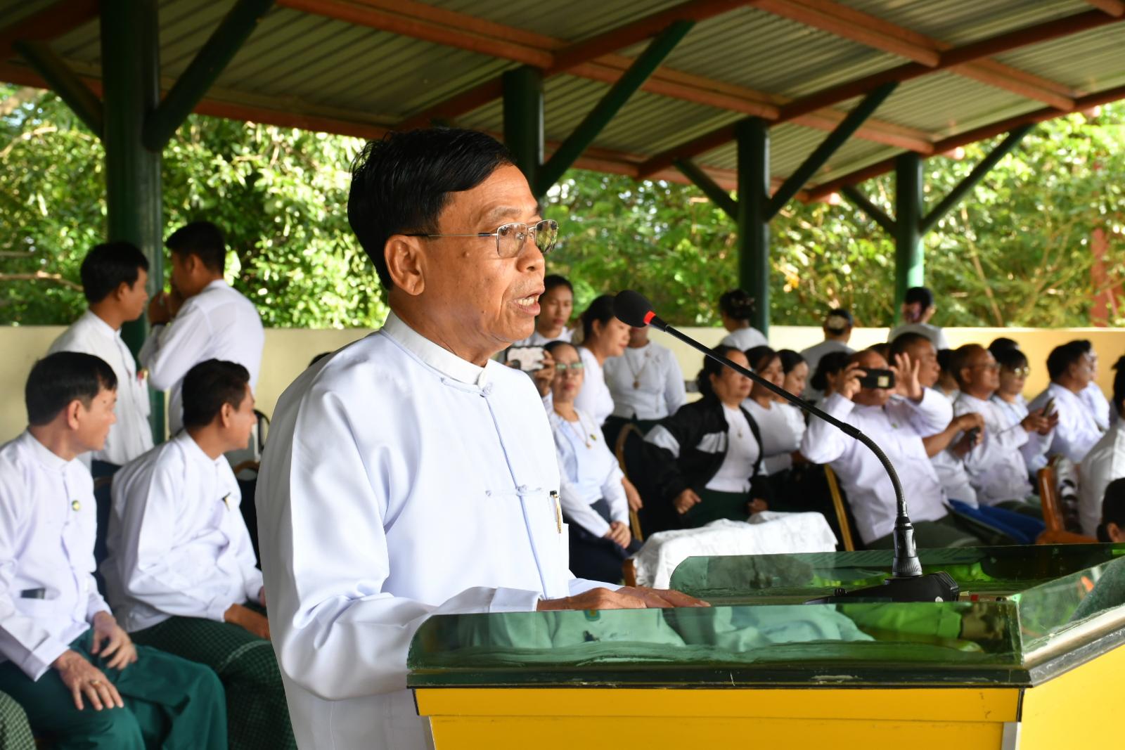 ဦးစွာ နေပြည်တော်ကောင်စီဥက္ကဋ္ဌ ဦးသန်းထွန်းဦးက ပြည်ထောင်စုနယ်မြေ၊ နေပြည်တော်အနေနဲ့ မြို့နယ် (၈) မြို့နယ်အတွင်းမှာရှိတဲ့ အခြေခံပညာကျောင်းသား၊ ကျောင်းသူများကို နိုင်ငံတော်အဆင့် အခြေခံပညာကျောင်းသားအားကစားပွဲတော်နဲ့ အာဆီယံကျောင်းသားအားကစားပွဲတော် (ASEAN School Games) တွေမှာ ဝင်ရောက်ယှဉ်ပြိုင်နိုင်ရေးအတွက် ရည်ရွယ်ပြီး ယခုလို နေပြည်တော်အဆင့်ပြိုင်ပွဲများကို ပဏာမကျင်းပဆောင်ရွက်ပေးခြင်းဖြစ်ပါကြောင်း၊ အားကစားဆိုသည်မှာ “အနိုင်အရှုံးတစ်ခုတည်းကို ယှဉ်ပြိုင်တာမျိုးမဟုတ်ဘဲ ဇွဲရှိမှု၊ သည်းခံမှု၊ ကျွမ်းကျင်မှု၊ စိတ်ဓာတ်ကြံ့ခိုင်မှု၊ စည်းလုံး ညီညွတ်မှု၊ စည်းကမ်းဥပဒေကို ရိုသေလေးစား လိုက်နာမှု၊ ယဉ်ကျေးမှု” စသည်တို့ကိုပါ ယှဉ်ပြိုင်ခြင်း ဖြစ်ပါကြောင်း၊ နိုင်ငံတကာအားကစားပြိုင်ပွဲများတွင် အောင်မြင်မှုရရှိခြင်းသည် နိုင်ငံတော်၏ စည်းလုံးညီညွတ်မှု၊ ဂုဏ်သိက္ခာနှင့် မျိုးချစ်စိတ်တို့ကို ဖော်ဆောင်နိုင်ခြင်းဖြစ်ပါကြောင်း၊ ယခုကျင်းပသည့် အခြေခံပညာကျောင်းသားအားကစား ပွဲတော်ကြီးတွင် ပါဝင်ယှဉ်ပြိုင်ကြမည့် အားကစားကျောင်းသား၊ ကျောင်းသူ မောင်မယ်များအနေဖြင့် နိုင်ငံတော်၏ ဂုဏ်သိက္ခာကို ဖော်ဆောင်နိုင်သော နိုင်ငံ့လက်ရွေးစင် အားကစားသမားများ ဖြစ်လာအောင် ကြိုးစားကြရန်ကိုလည်း မှာကြားလိုကြောင်း၊ ကျောင်းသားအားကစားပွဲတော်ကို အားကစားနည်း (၇) မျိုးနဲ့ပဲ ကျင်းပဆောင်ရွက်သွားမှာဖြစ်ပြီး ပြည်ထောင်စုနယ်မြေ၊ နေပြည်တော်အနေနဲ့ နေပြည်တော်အဆင့် အခြေခံပညာကျောင်းသားအား က စားပွဲတော်မှာ ပါဝင်တဲ့ ပြေးခုန်ပစ်နဲ့ ကြက်တောင်ပြိုင်ပွဲများကို လယ်ဝေးလေ့ကျင့်ရေးစခန်း (၂) တွင်လည်းကောင်း၊ ကျားဘောလုံးပြိုင်ပွဲကို အထက (၆) ဇမ္ဗူသီရိတွင် လည်းကောင်း၊ မဘောလုံးပြိုင်ပွဲနဲ့ ကျန်တဲ့ကစားနည်း(၄)မျိုးကို အထက(၇)ဇမ္ဗူသီရိတွင်လည်းကောင်း ကျင်းပပေးသွားမှာဖြစ်ပါကြောင်း၊ အခြေခံပညာကျောင်းသားအားကစားပွဲတော်များ ကျင်းပပေးနိုင်ခြင်းဖြင့် မြန်မာ့လက်ရွေးစင် အားကစားသမားများရဲ့ ၈၀% ဟာ ကျောင်းသားအားကစားပြိုင်ပွဲဝင် မျိုးဆက်သစ်များမှ အခြေပြုလာတဲ့ အားကစားသမားများ ဖြစ်နေကြောင်းကိုလည်း တွေ့ရှိရပါကြောင်း၊ ပြိုင်ပွဲဝင်အားကစားသမားများဖြစ်တဲ့ ကျောင်းသား၊ကျောင်းသူများက အားကစားသစ္စာအဓိဋ္ဌာန်မှာပါတဲ့အတိုင်း အားကစားစိတ်ဓာတ်ကို အရင်းခံပြီး ပြိုင်ပွဲဝင်အချင်းချင်း ချစ်ခင်ရင်းနှီးမှု၊ ဇွဲ၊လုံ့လ၊ ဝီရိယရှိမှု၊ သည်းခံမှု၊ စိတ်ဓာတ်ကြံ့ခိုင်မှု၊ စည်းလုံးညီညွတ်မှု၊ အသင်းအဖွဲ့စိတ်ဓာတ် ရှိပြီး ပူးပေါင်းဆောင်ရွက်တတ်တဲ့ အလေ့ကျင့်ကောင်းများ၊ စိတ်ဓာတ်ကောင်းများနဲ့ ပါဝင်ယှဉ်ပြိုင်ကြစေလိုကြောင်း 